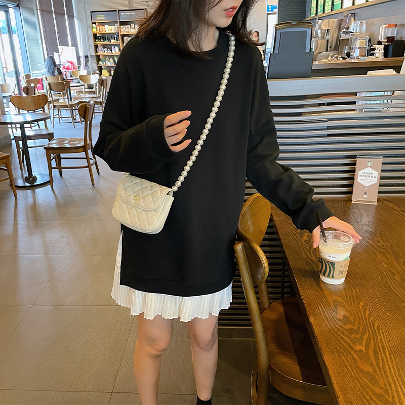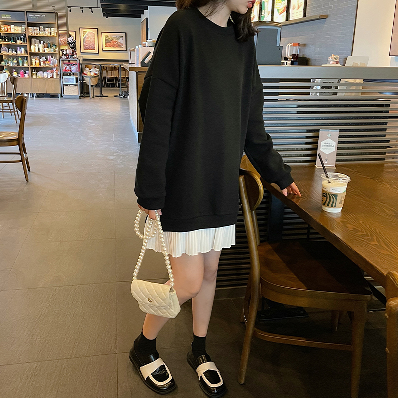 女装 气质裙子女显瘦百褶宽松大码 卫衣连衣裙 拼接时尚 2021秋冬新款