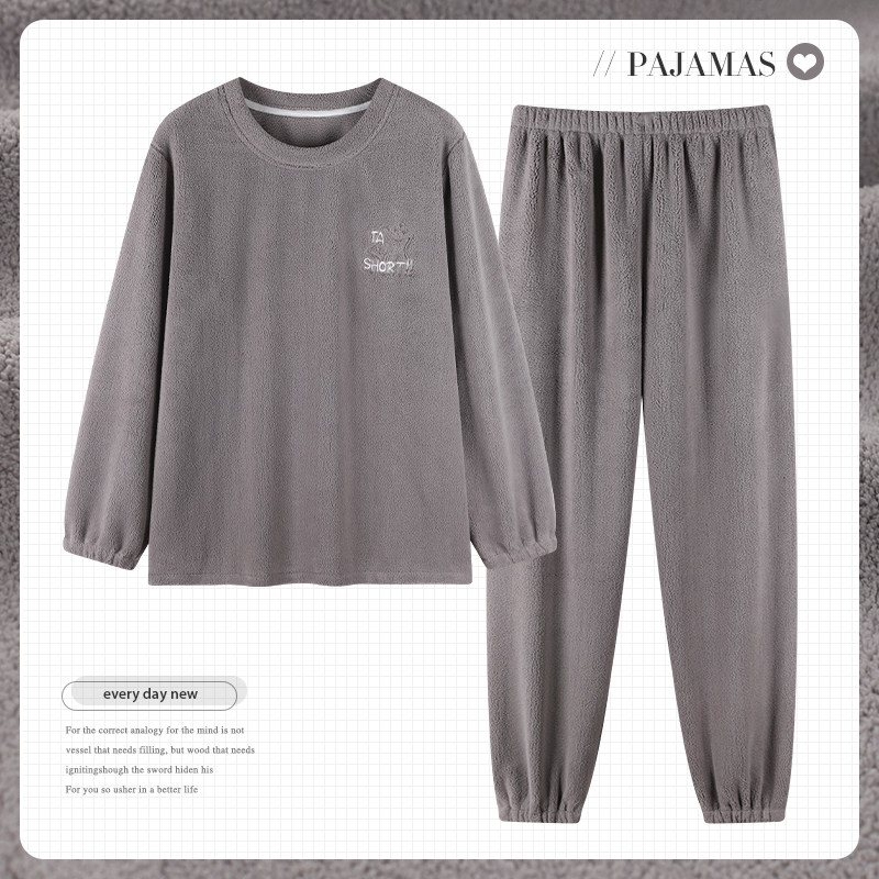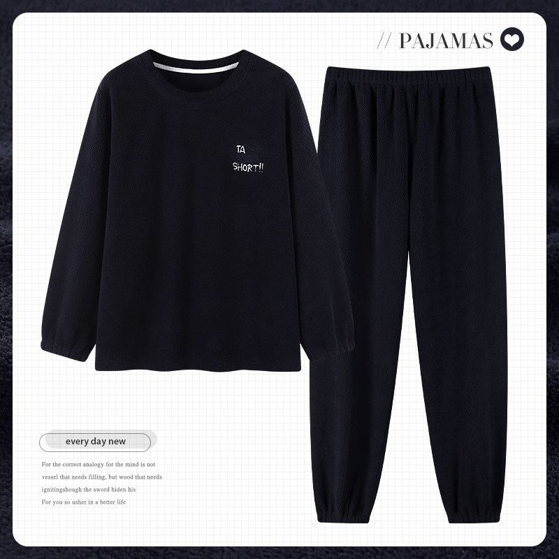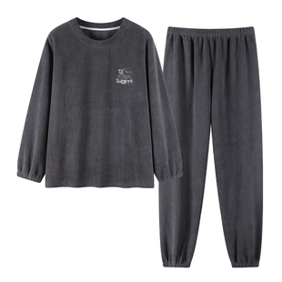 加绒加厚珊瑚绒青少年男生家居服套装 2025新款 春秋冬季 睡衣男士