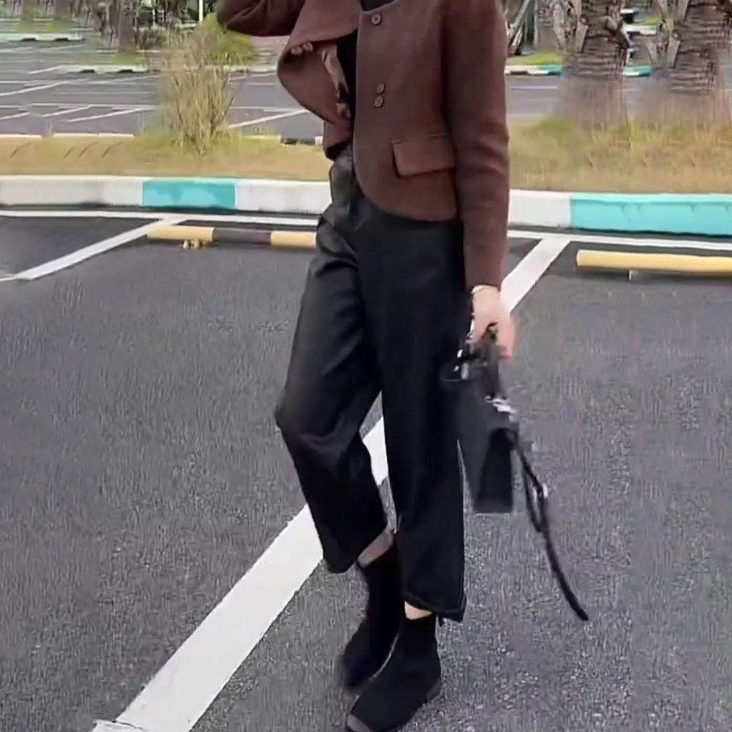 胖mm宽松显瘦梨形身材阔腿裤 加绒大码 女直筒冬季 深灰色糯米休闲裤