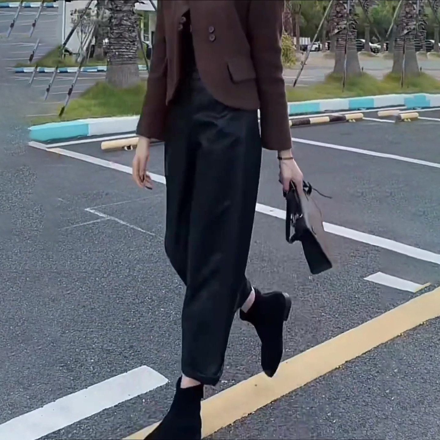 宽松垂感梨形身材显瘦直筒裤 加绒胖mm大码 子 女冬季 灰色糯米休闲裤