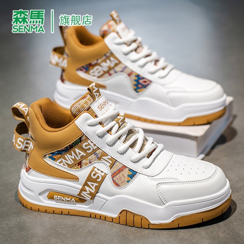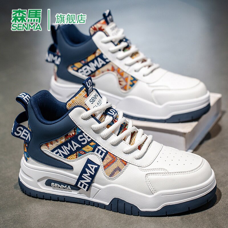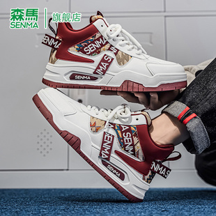 棉鞋 冬季 潮流百搭男士 板鞋 子 森马高帮男鞋 真皮运动软底增高鞋 新款