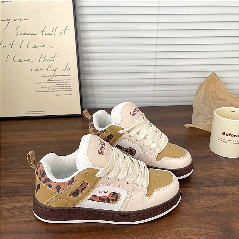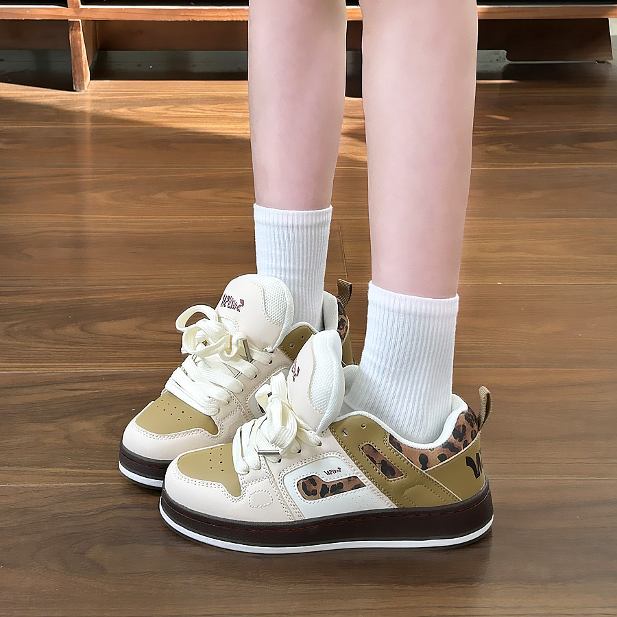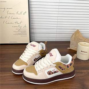 女ins潮2025冬季 男鞋 新款 小众百搭休闲小白鞋 板鞋 情侣豹纹面包鞋