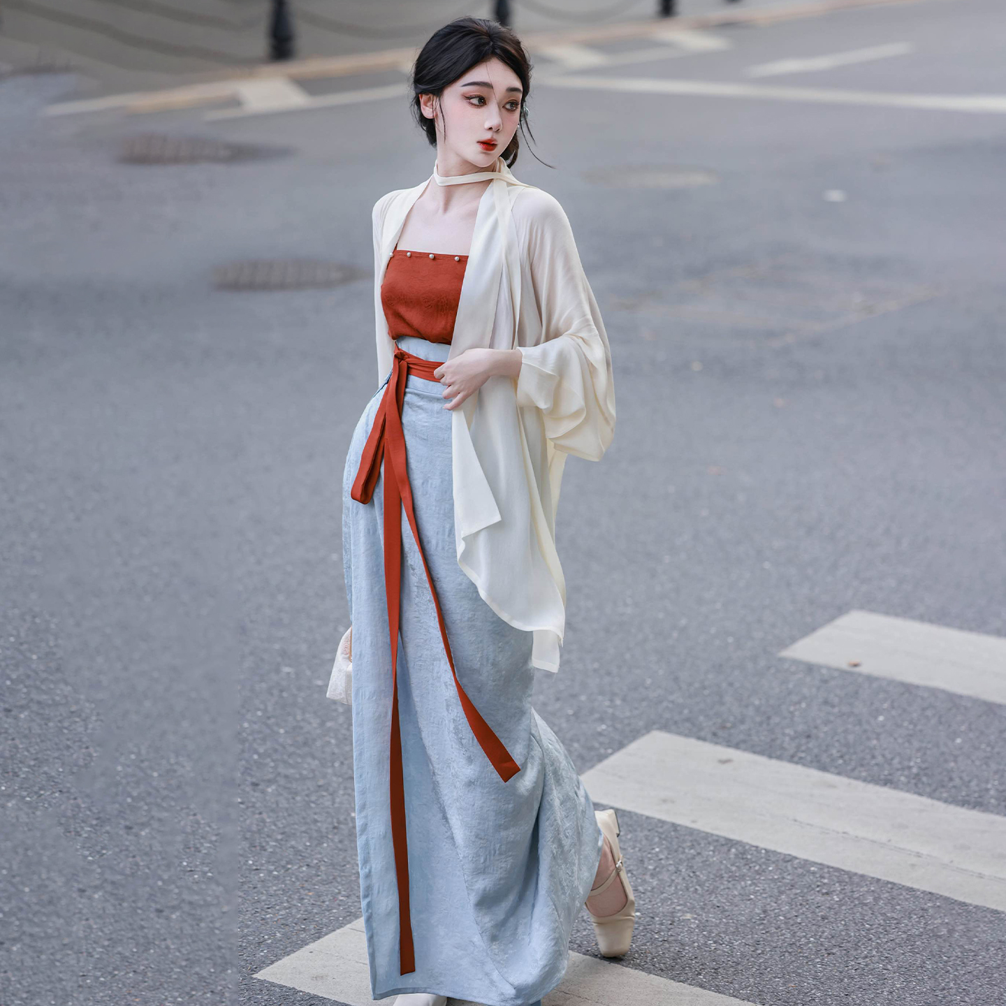 拟梦等烟雨 撞色高品质通勤人丝提花钉珠 原创汉服宋制旋裙飞机袖