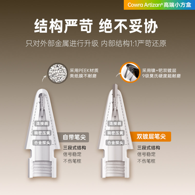 双镀层类纸膜专用笔尖适用苹果applepencil笔头ipencil二代Pro针管金属替换ipadpencil改造一代ipad耐磨防滑