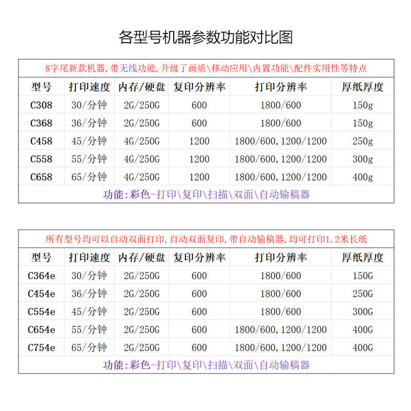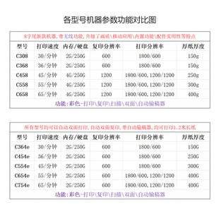 454 458 554 368 658 754e 柯美彩色复印打印机a3a4激光双面c364e