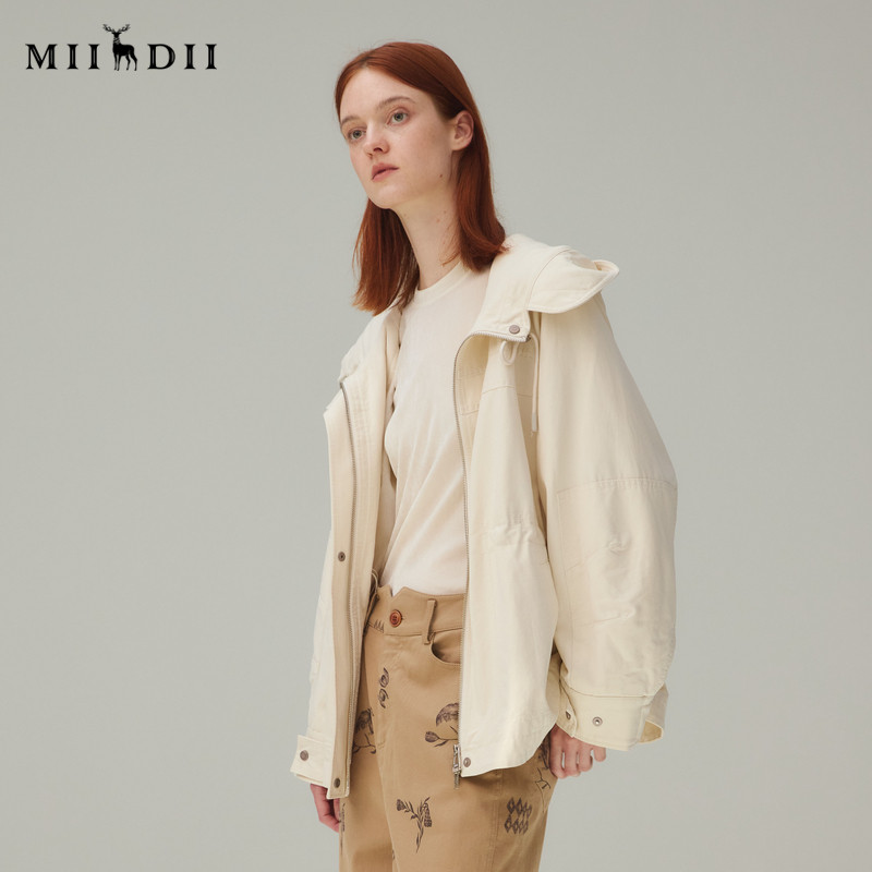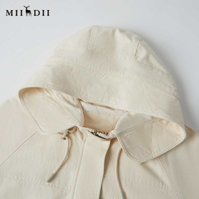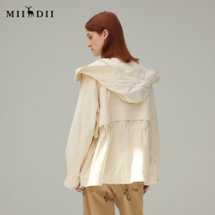 谜底风衣女2025秋新品 可调节收腰插肩连帽外套253ME1075 通勤时尚