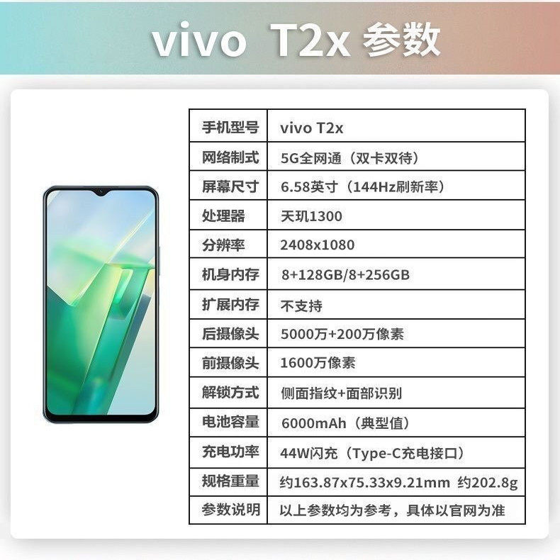 vivo T2X全网通5G大屏6000mAH大电池学生游戏老人拍照指纹NFC手机