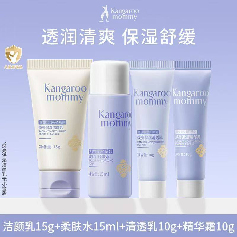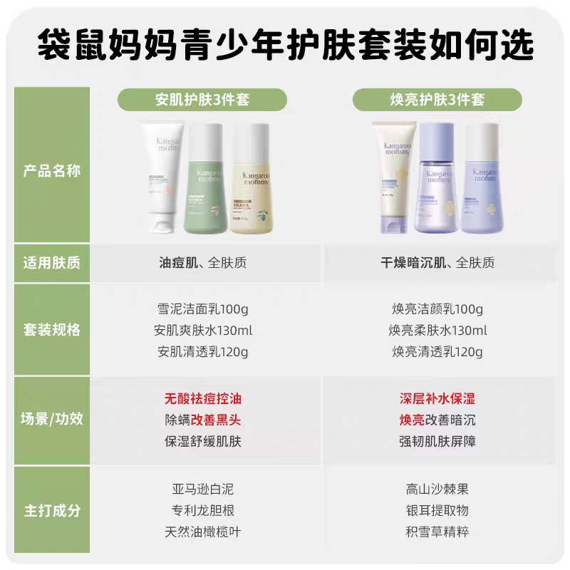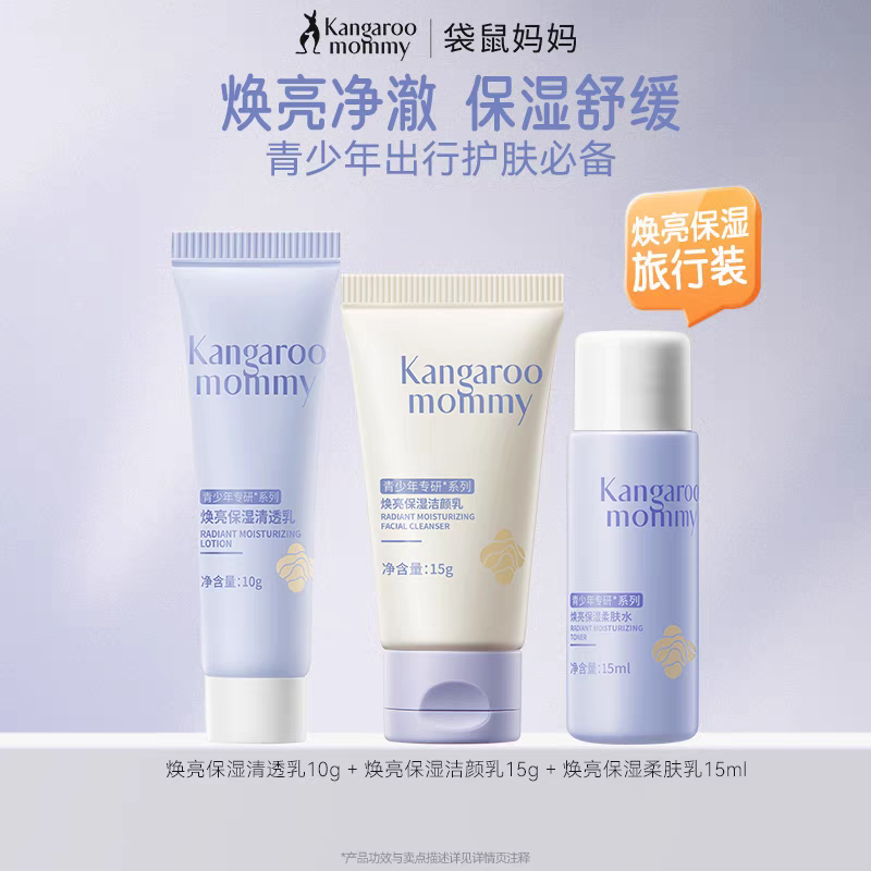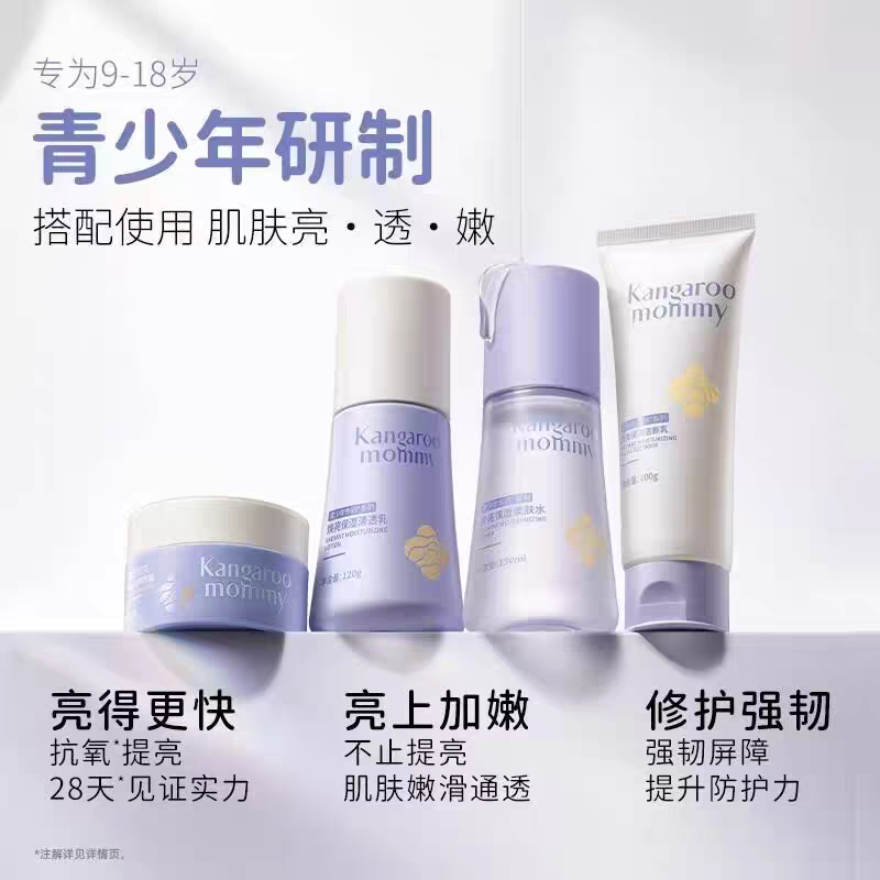 袋鼠妈妈青少年护肤套装 控油祛痘儿童洗面奶水乳男女孩洁面乳正品