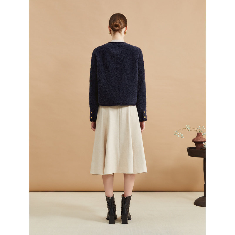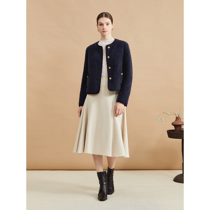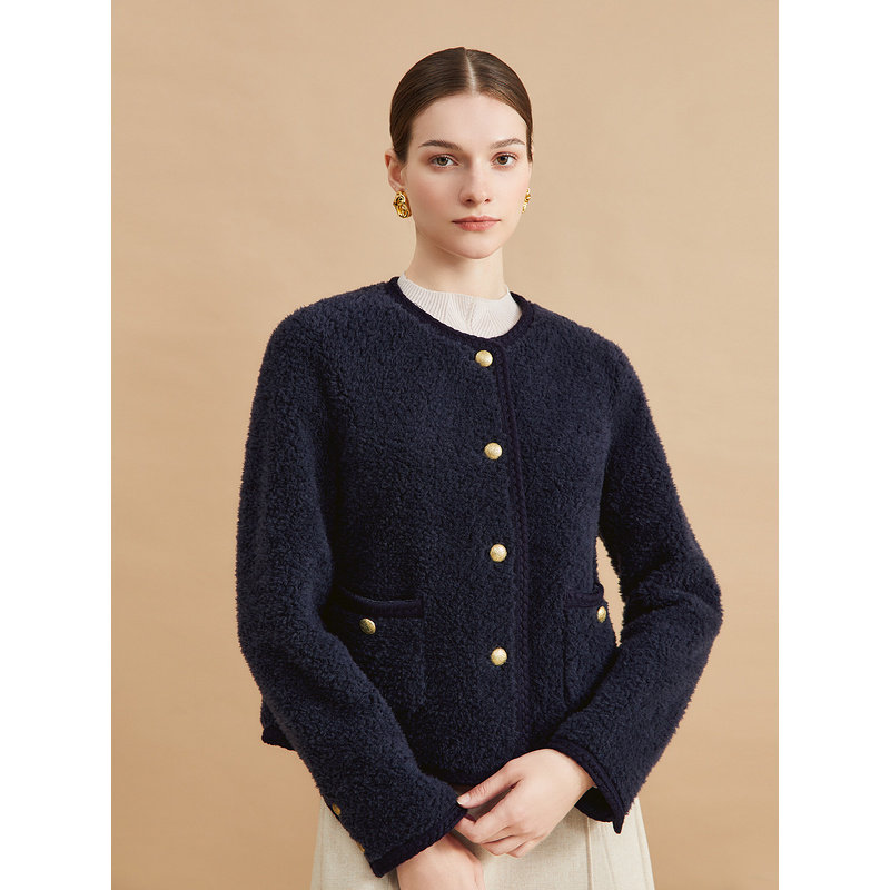 短款 YINER音儿专选女装 法式 时尚 圆领保暖环保羊毛皮草外套 冬季
