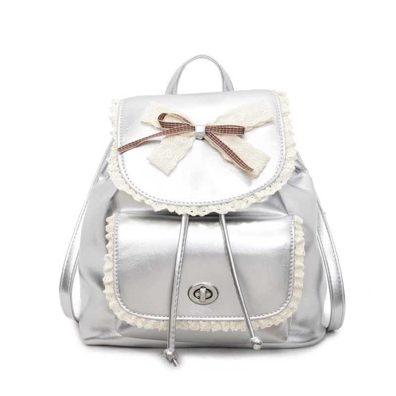 蝴蝶结双肩包包女 爆火时尚 美式 复古可爱少女洋气银色背包2025新款