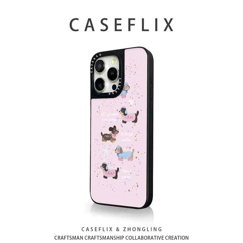 CASE联名粉色腊肠狗适用于苹果16手机壳小米15华为mate70硅胶pura80新款 12皮纹RENO14三星s24 iPhone13promax