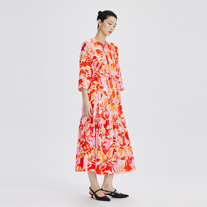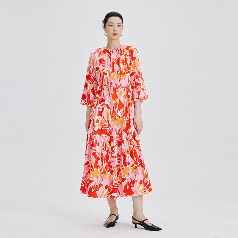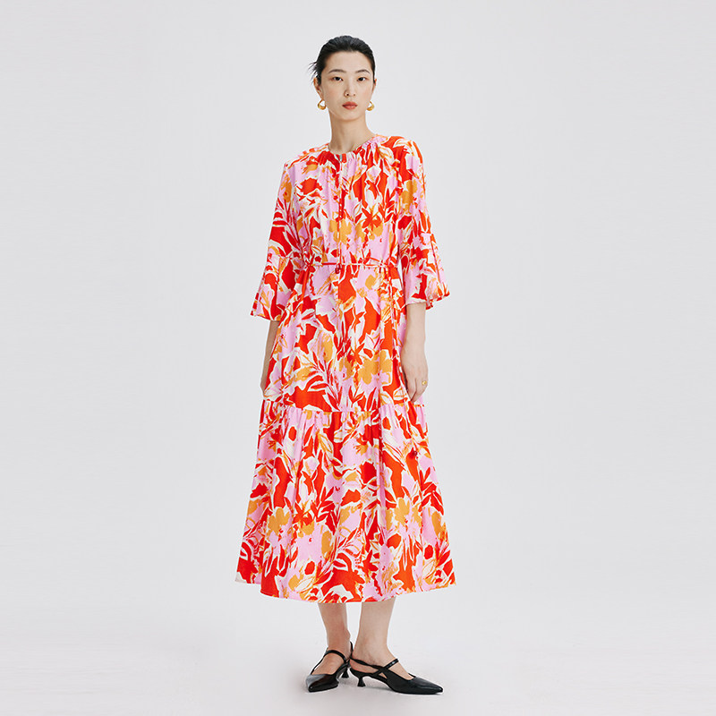 喇叭袖 CHENSHII官方 设计感花色拉链式 新款 连衣裙 2026春季