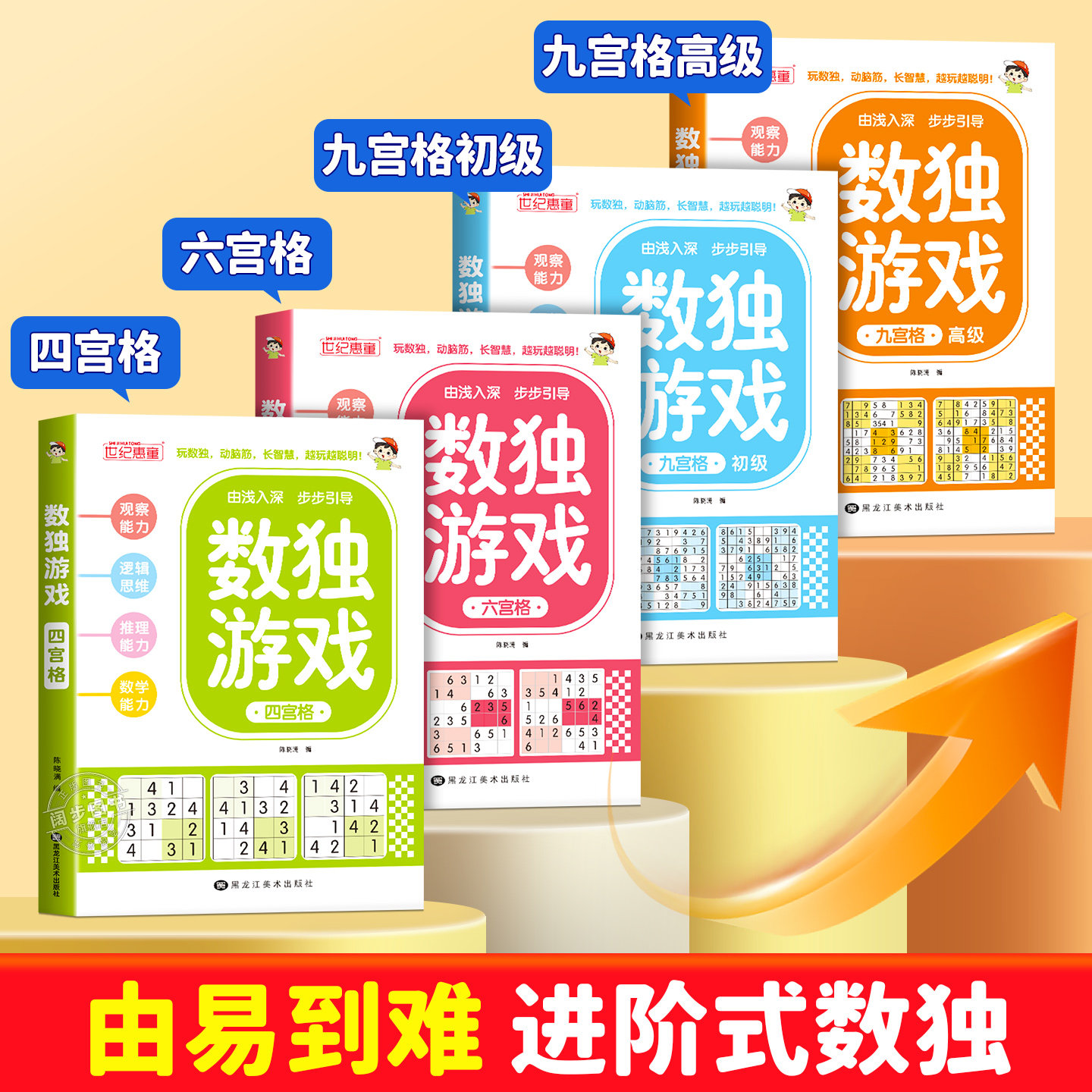 数独游戏阶梯训练全4册正版 12岁逻辑思维专注力培养益智书冠军零基础到精通分步讲解附答案全脑开发趣味闯关 四六九宫格小学生6