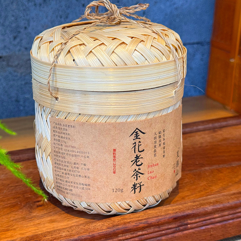 湖南安化芙蓉山高山老树2012年金花老黑茶籽稻香茶气足竹篓装