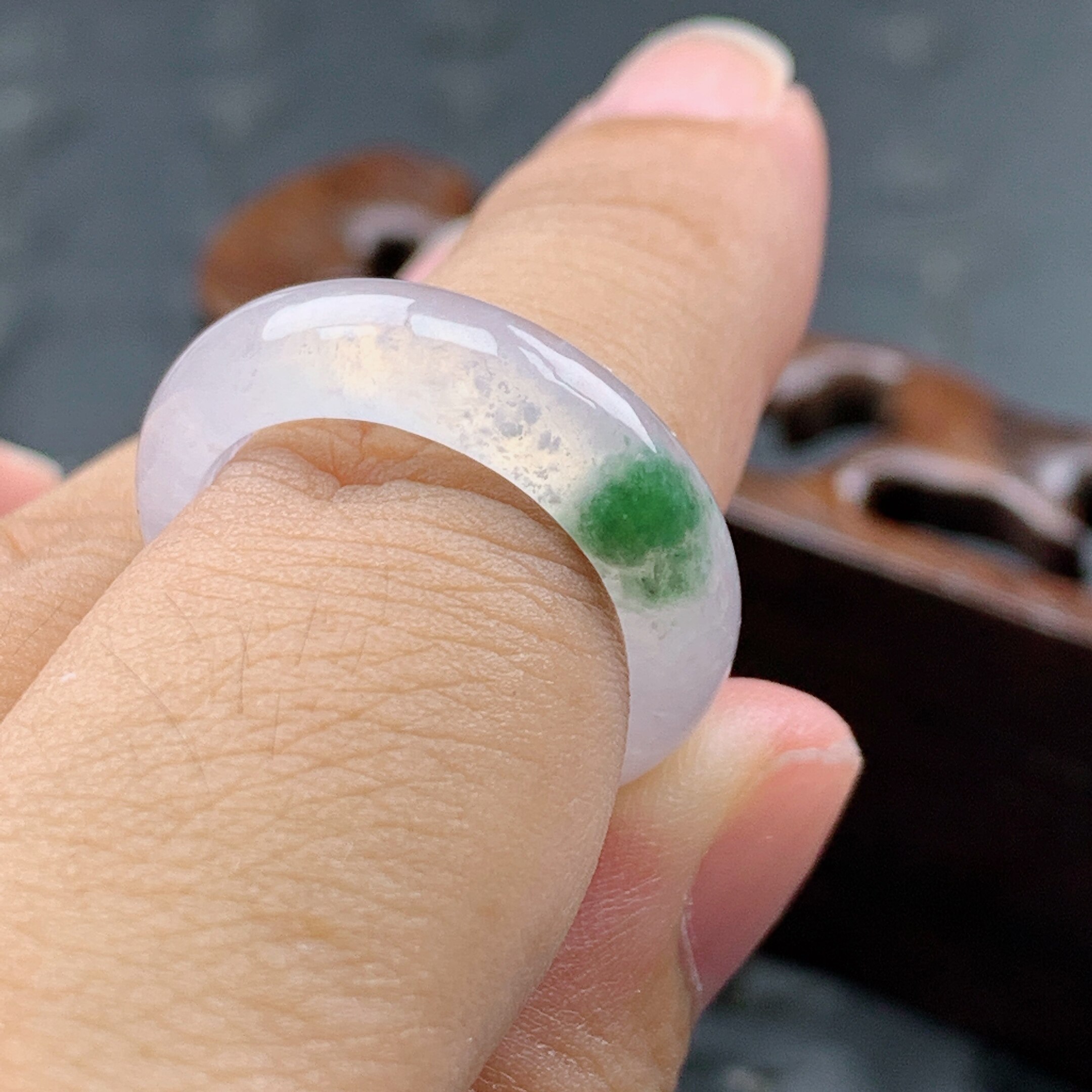 3mm 15号缅甸天然A货翡翠 5.7 内径17.6 冰飘花戒指 T851