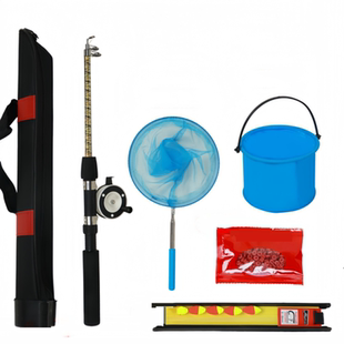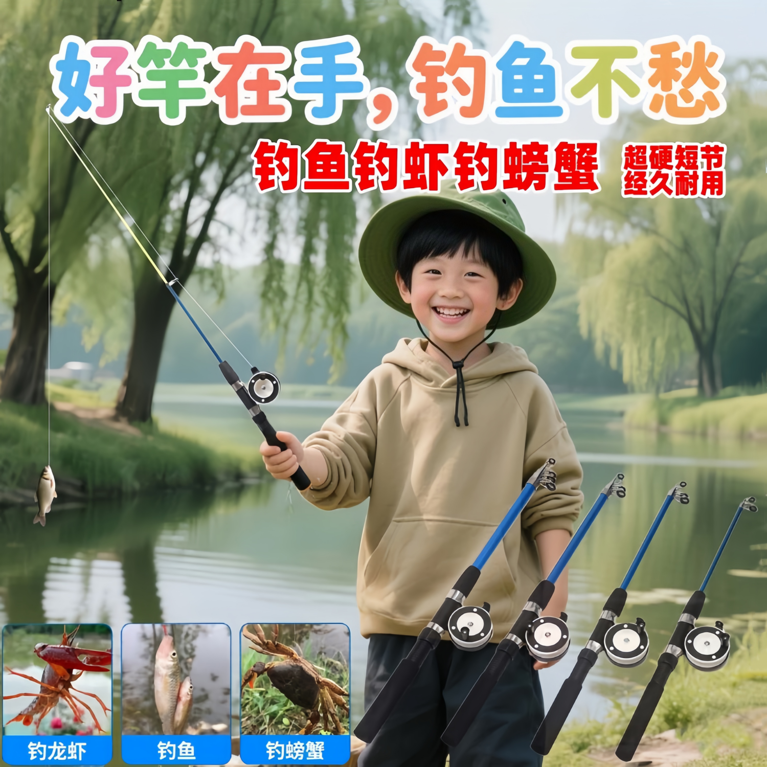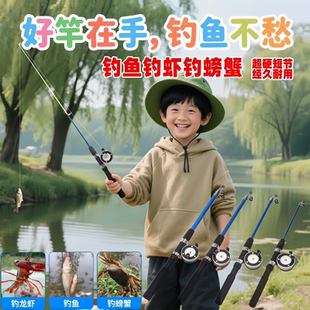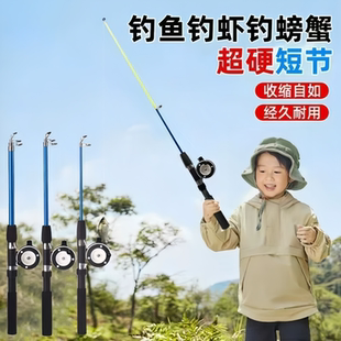 儿童钓鱼竿全套伸缩垂钓杆超轻小物竿钓龙虾螃蟹溪流竿冰钓带渔轮