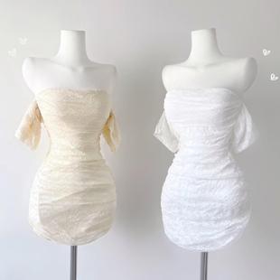 51STUDIO辣妹小个子甜美短款 包臀紧身一字肩蕾丝气质纯欲连衣裙