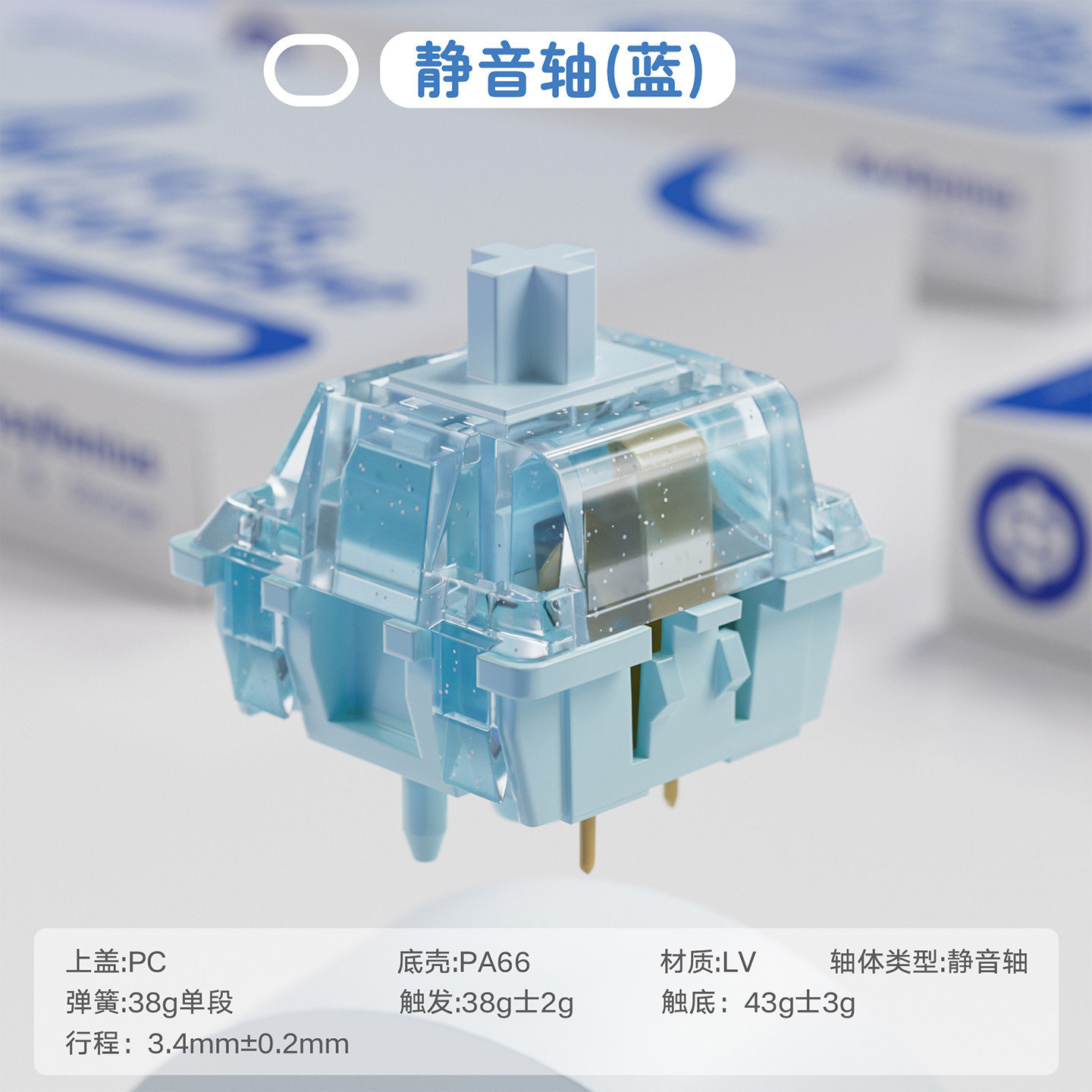 URE蓝默静音轴客制化五脚热插拔键轴蓝色PC闪粉上盖机械键盘轴体