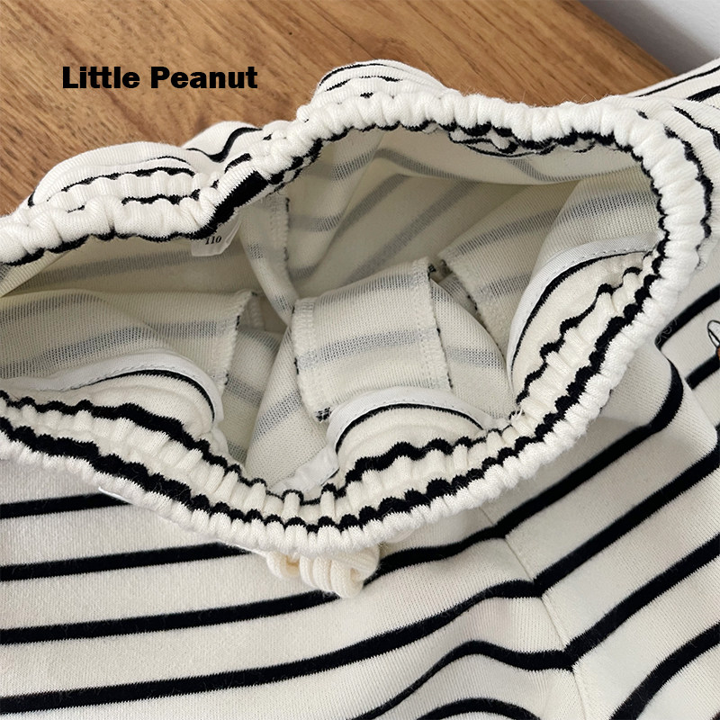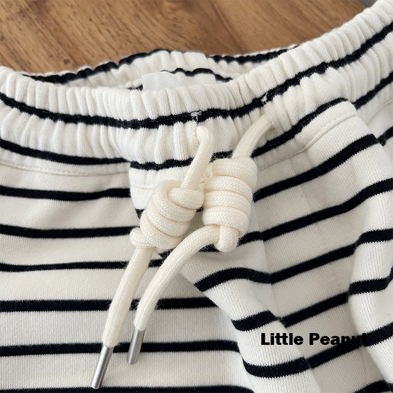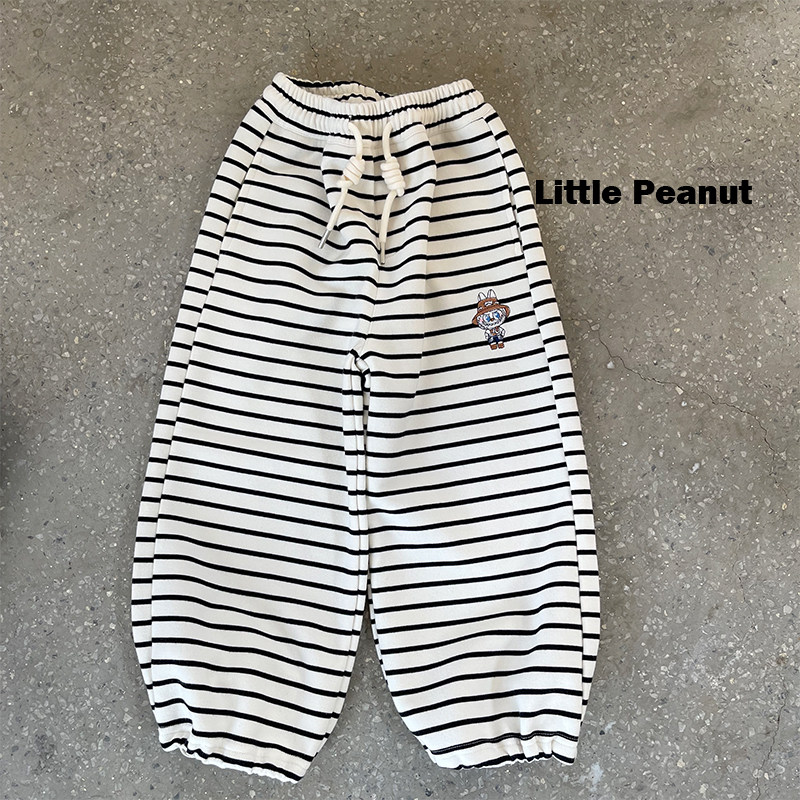 松紧腰宽松两穿阔腿裤 110 可爱刺绣 中大童装 150 男女宝 条纹卫裤