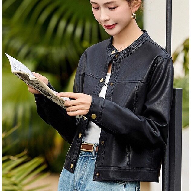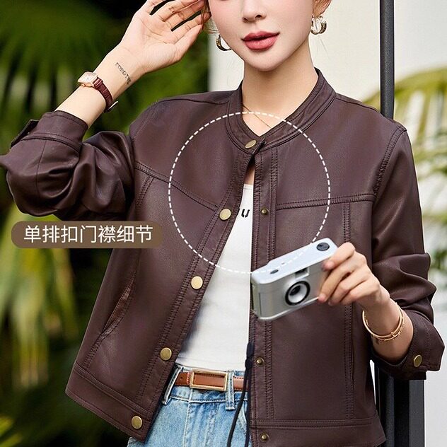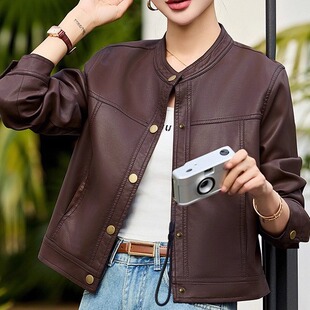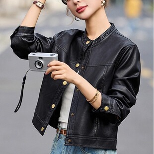休闲皮夹克 时尚 海宁小个子女士皮衣外套女短款 洋气翻领春秋新款