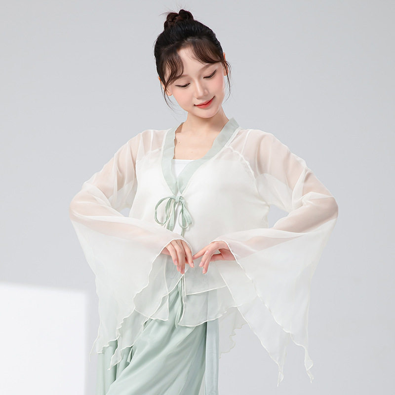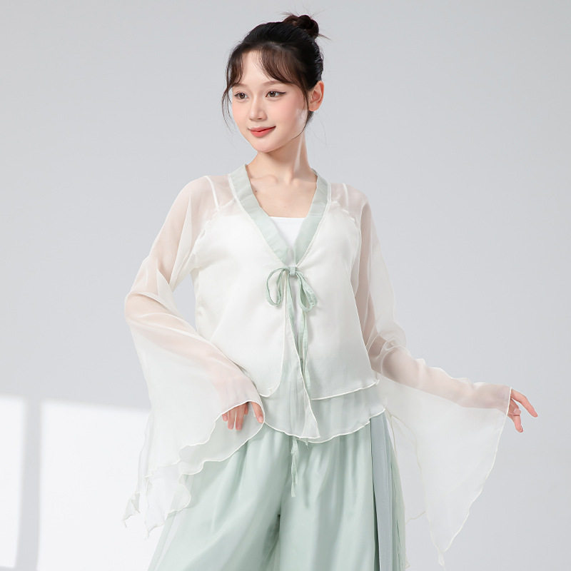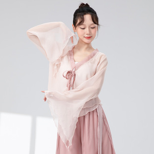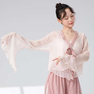 仙气纱衣舞蹈服演出服上衣 撞色领水袖 古典舞练功服女新款 天丝开衫