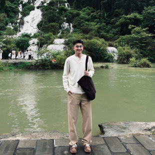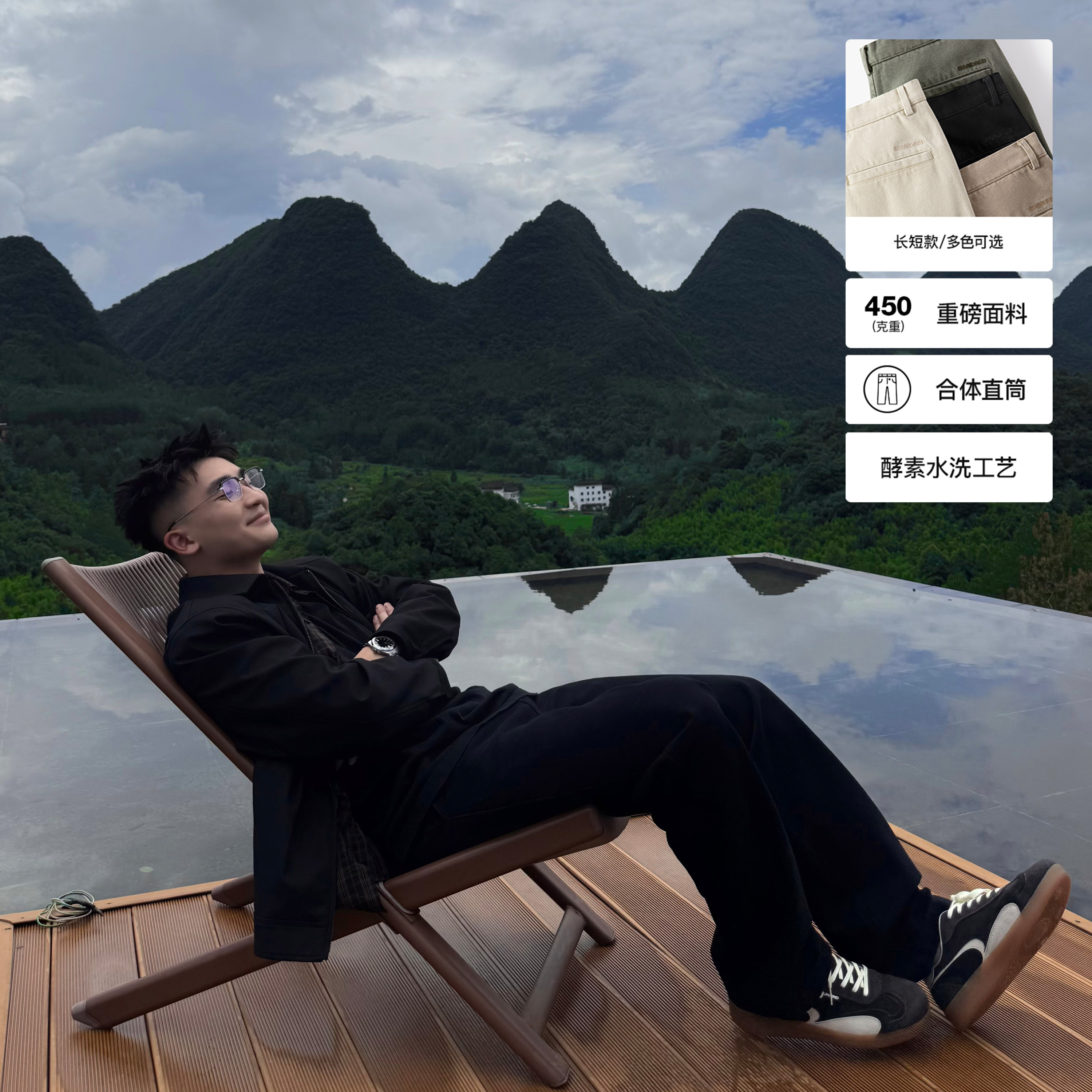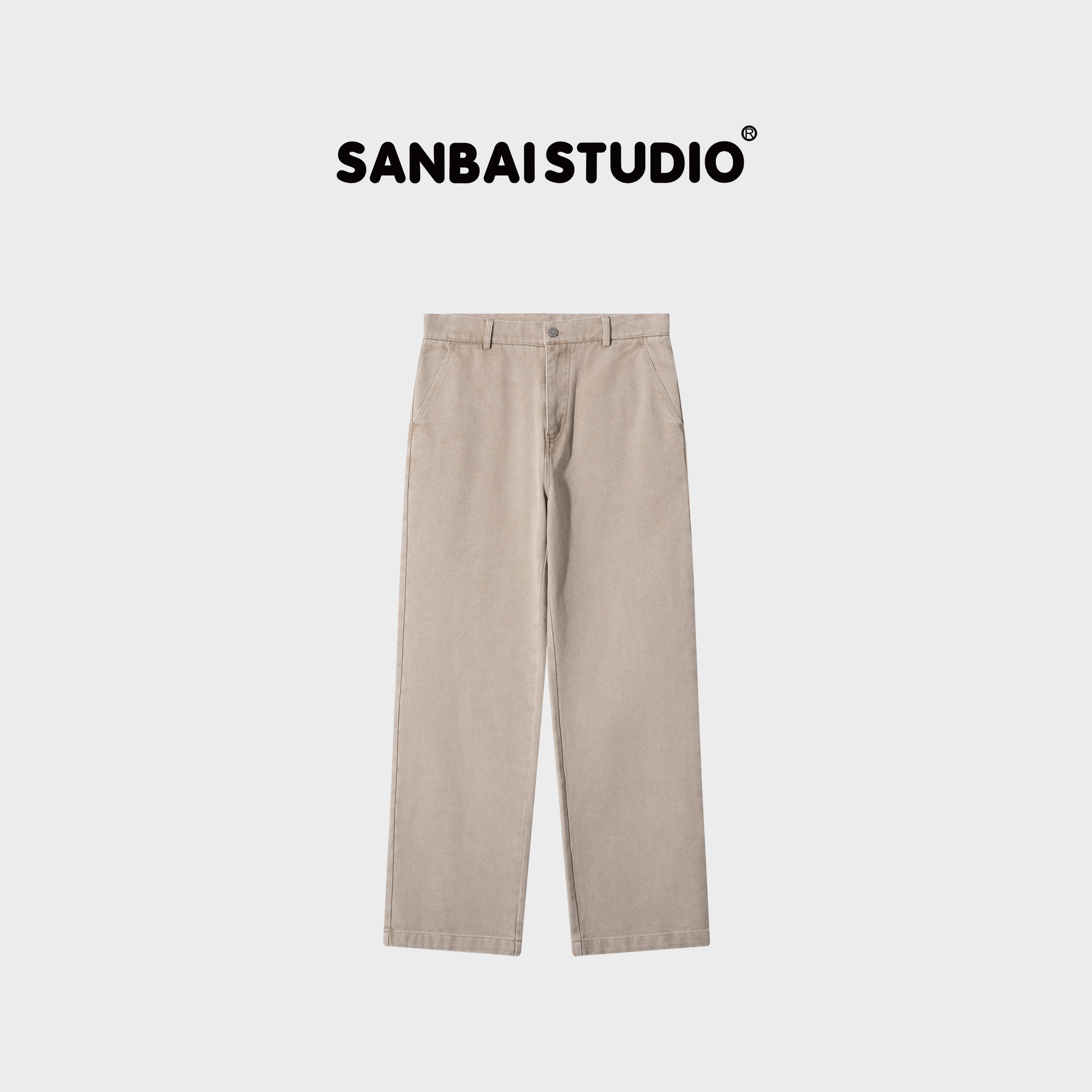 叁佰 加厚直筒休闲裤 450克珠帆 男士 子 秋冬重磅帆布长裤 SANBAI