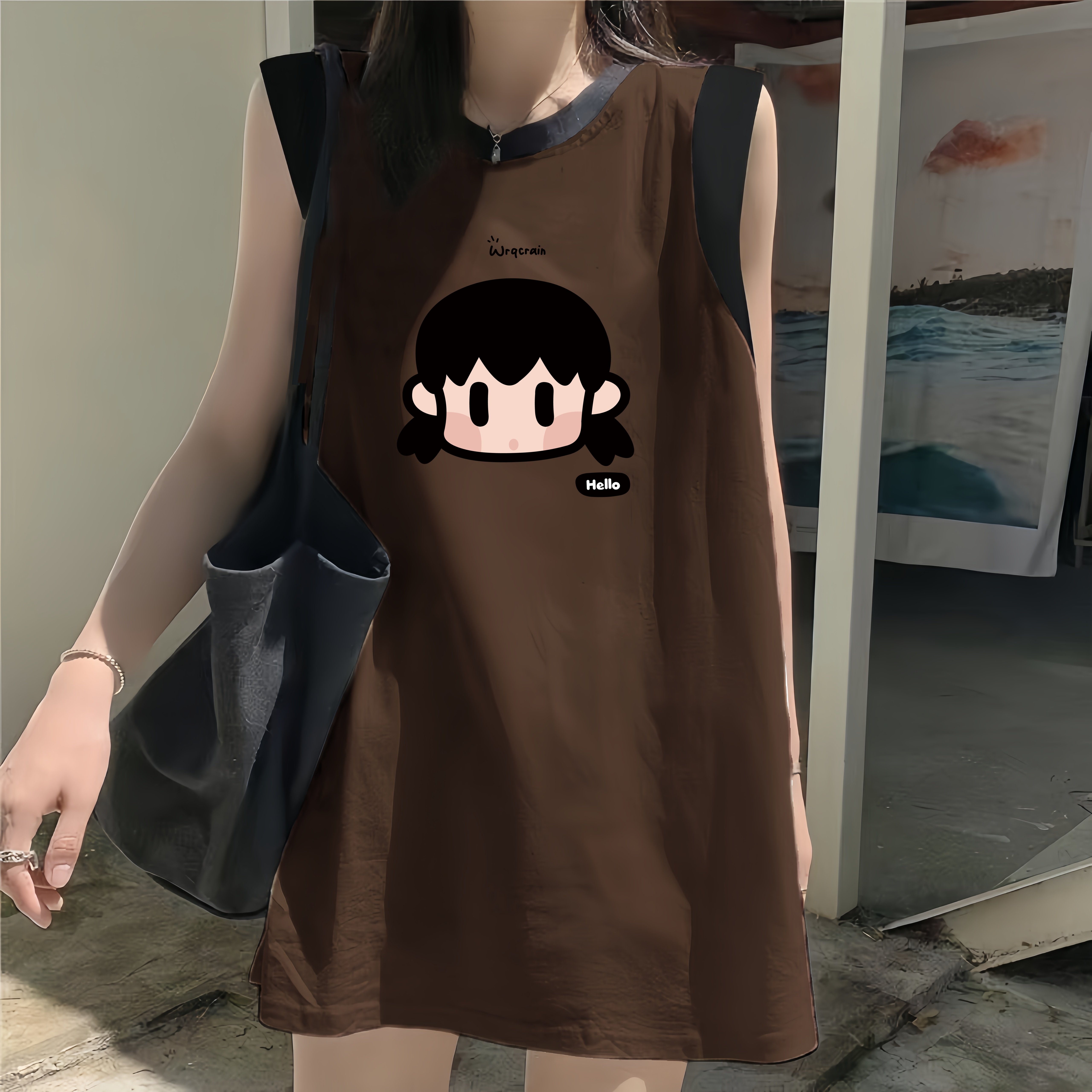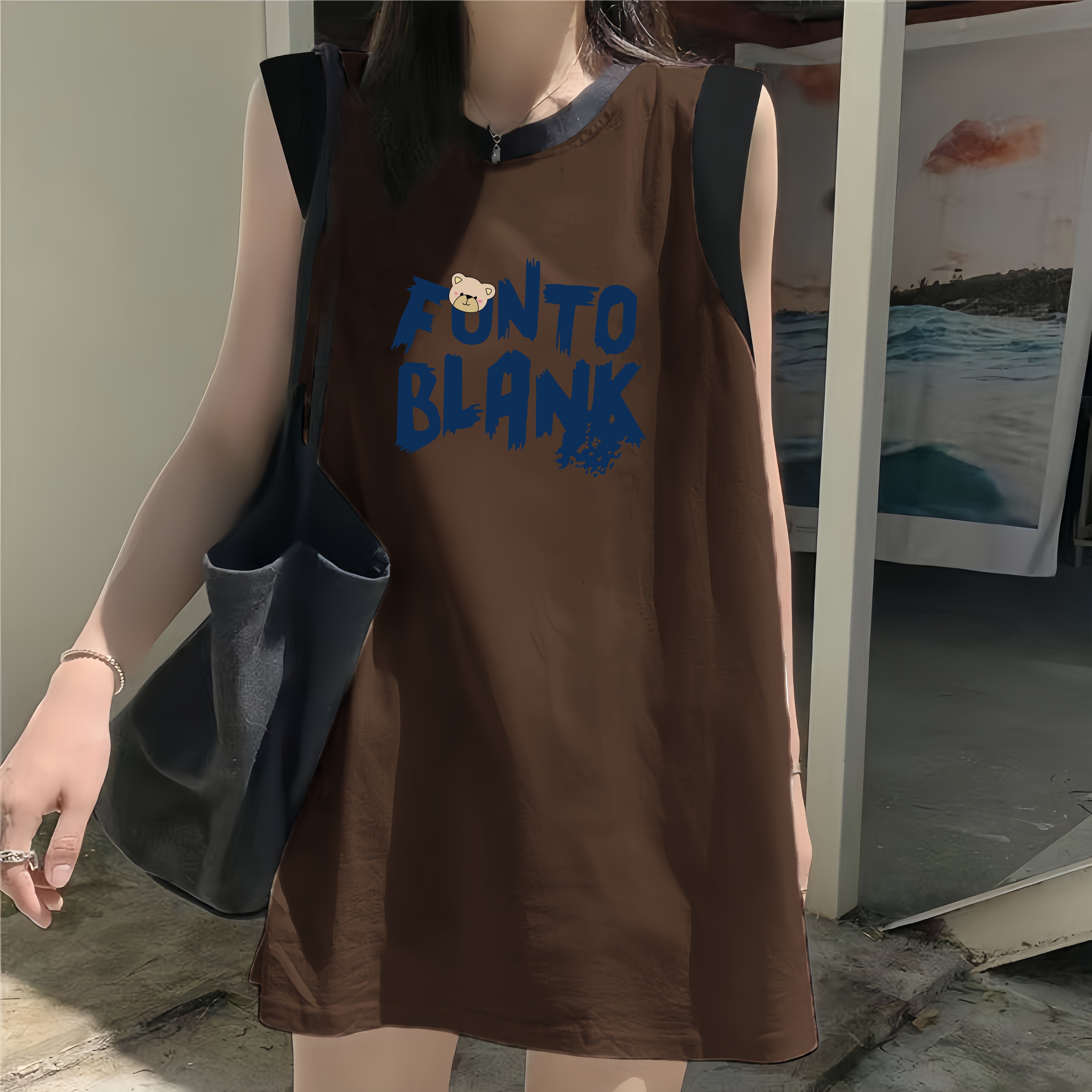 纯棉无袖 遮屁股居家慵懒风休闲上衣 t恤背心女宽松夏外穿2025新款