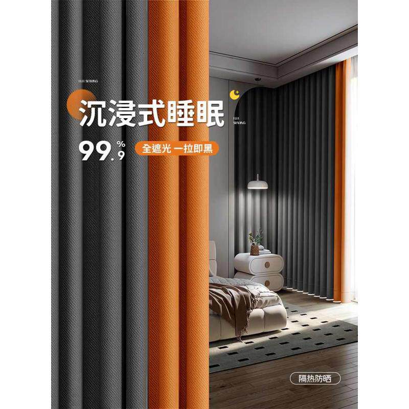 2024新款 布拼色窗帘卧室感全遮光窗帘 客厅隔热防晒阳台飘窗挂钩式