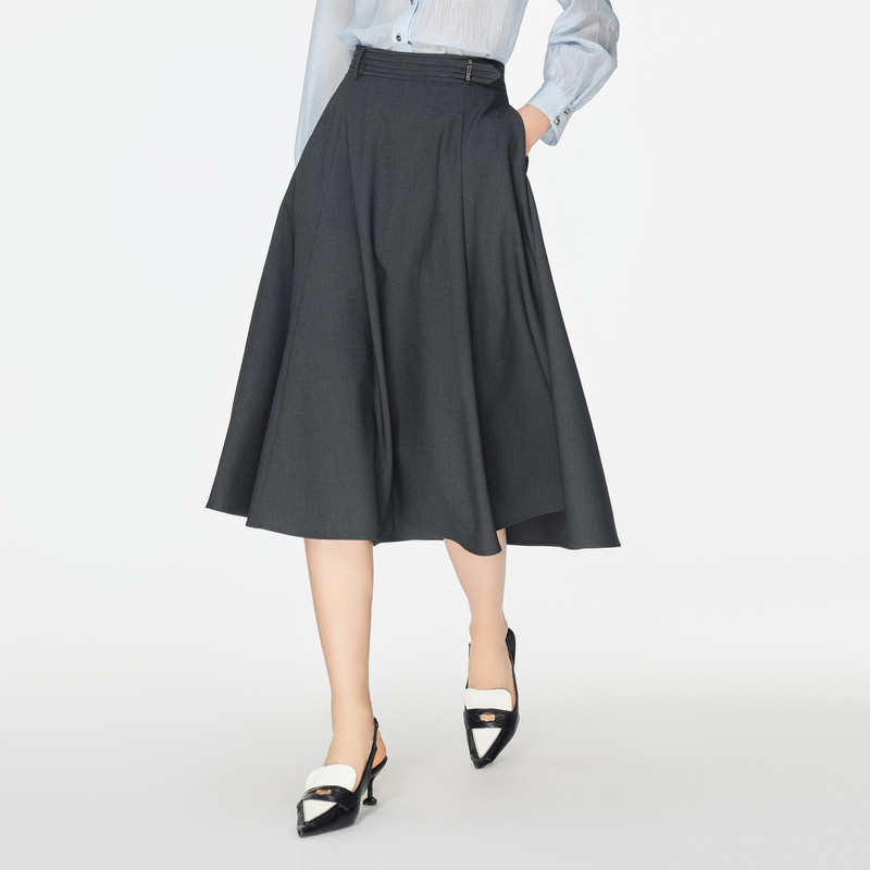 飘蕾韩版 显瘦半身裙女2026春通勤a字裙高腰纯色伞裙小个子穿搭