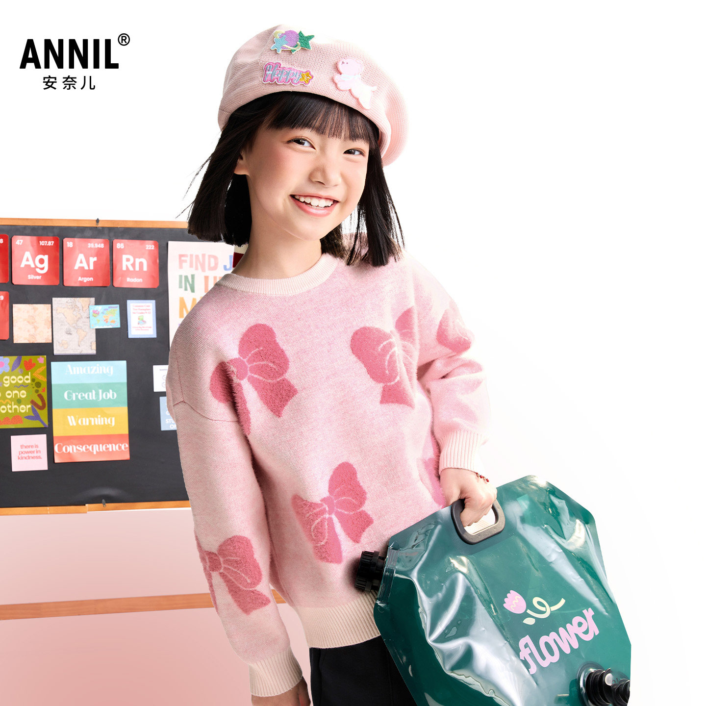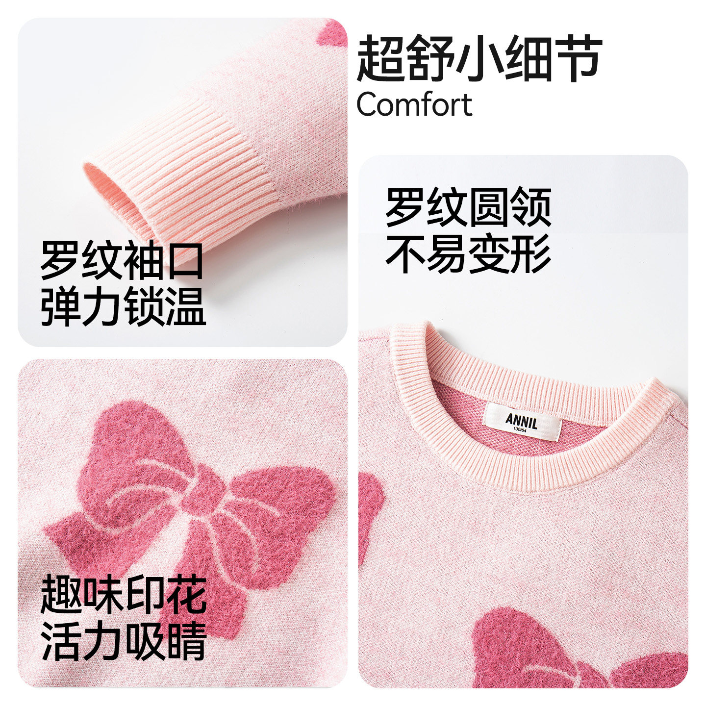 时尚 安奈儿童装 2025冬新款 毛衣针织衫 甜美提花保暖 女童圆领长袖
