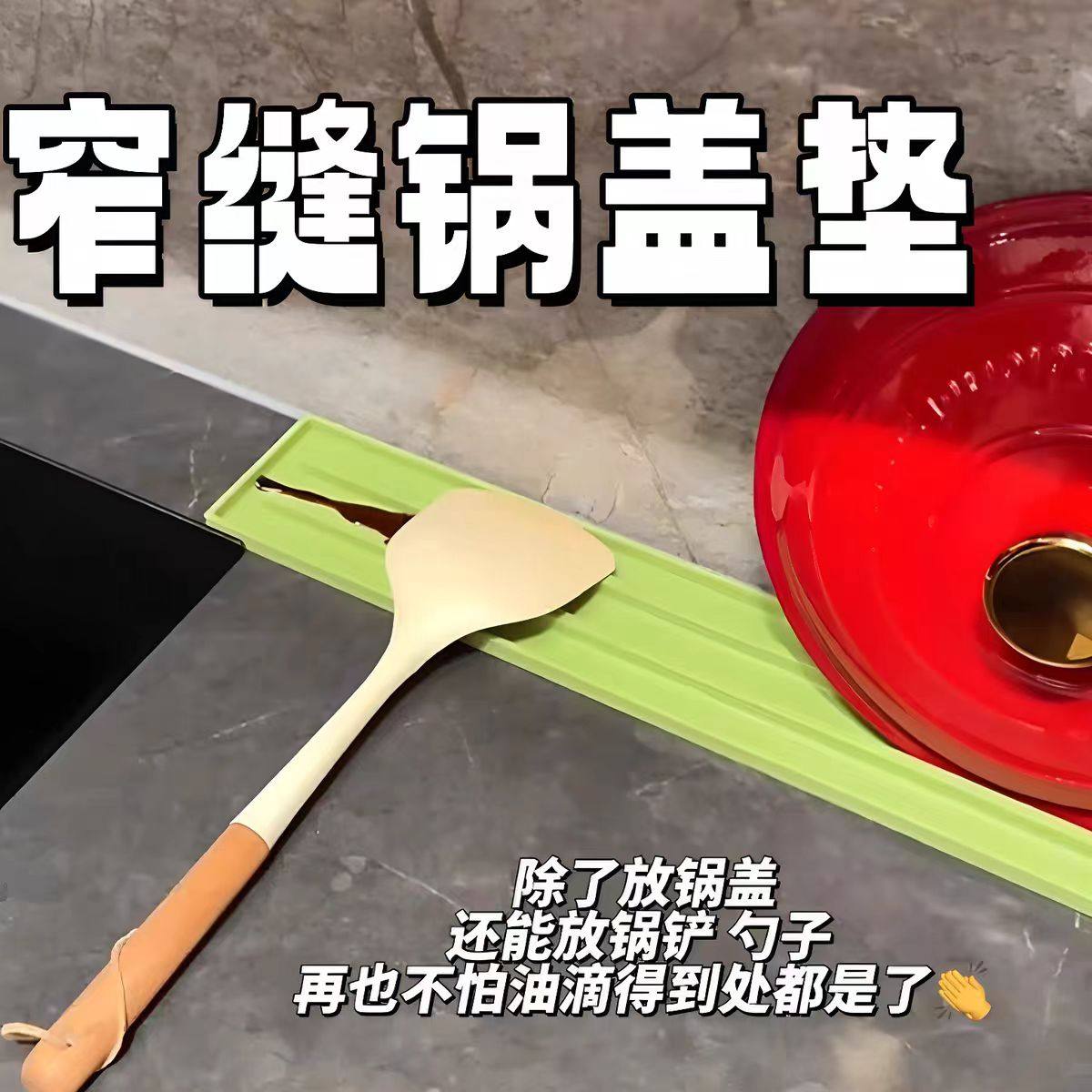 硅胶台面式 锅盖垫厨房灶台多功能窄缝锅盖收纳垫免打孔防滑沥水垫