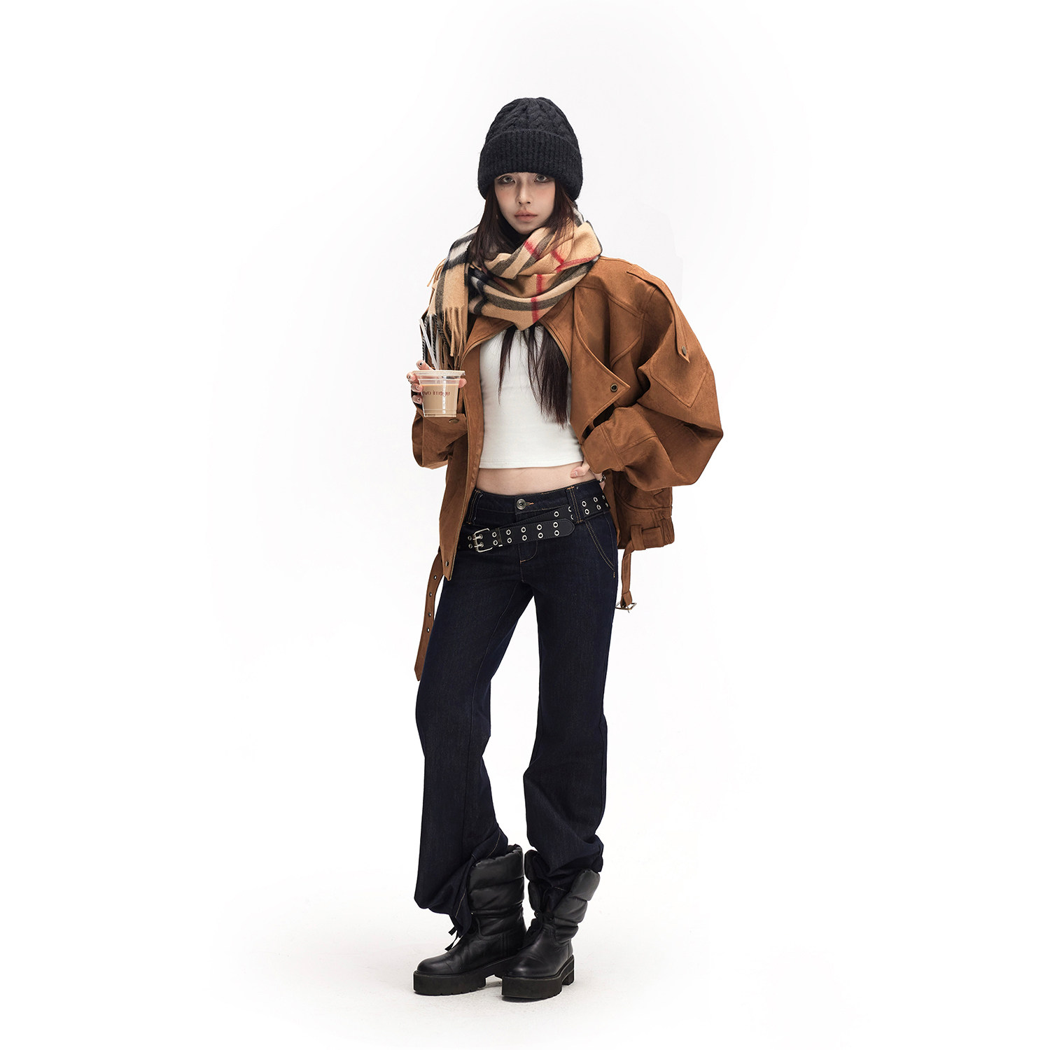 2025秋冬百搭直筒牛仔裤 0120 辣妹设计感低腰长裤 美式 common