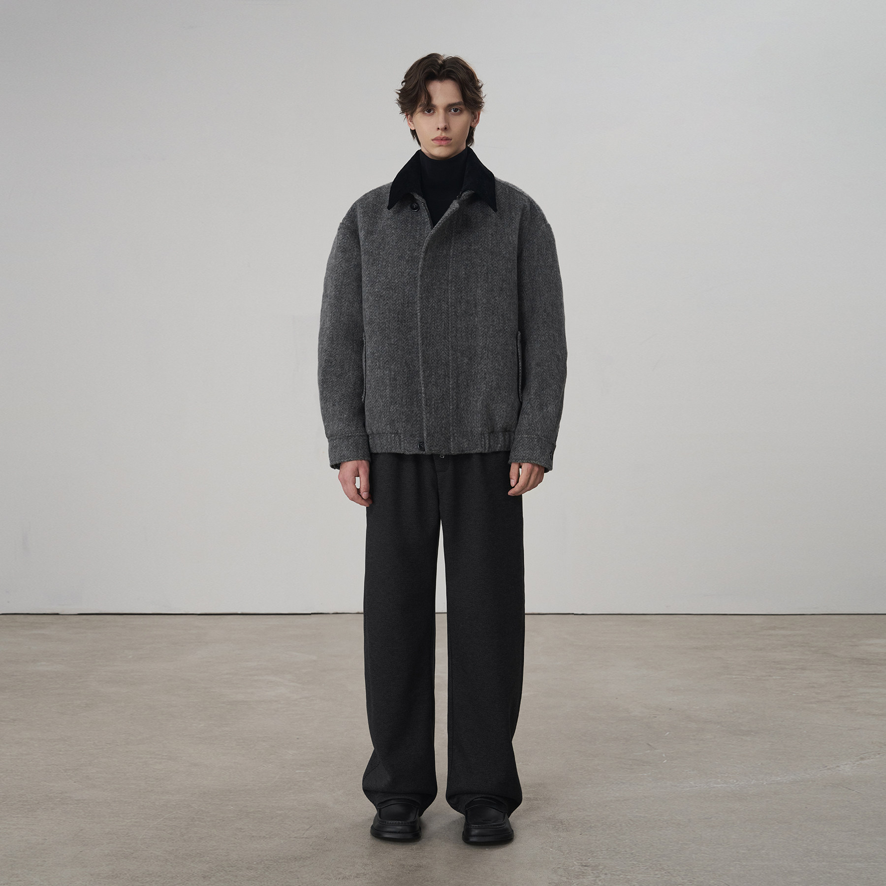 韩版 长款 呢子加厚风衣外套 2025春秋季 V37黑色高级感毛呢大衣男款