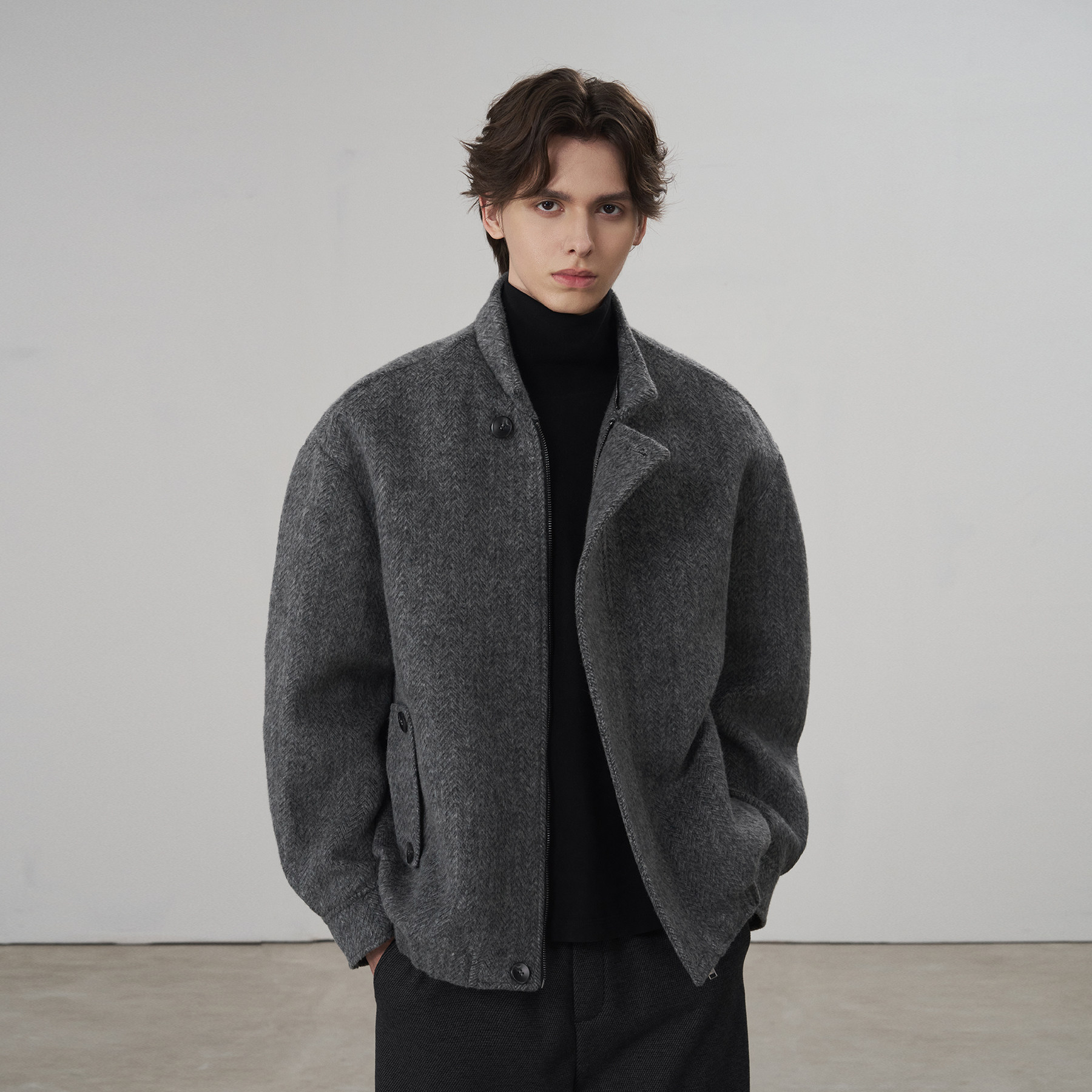 慵懒风双面羊毛大衣女中长款 灰色毛呢外套高级感