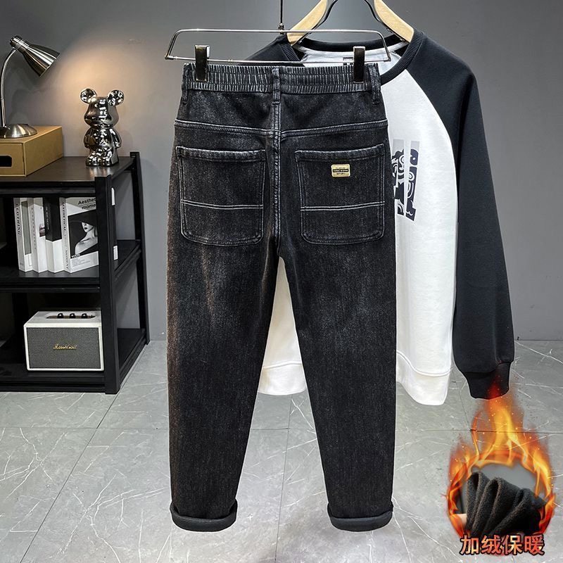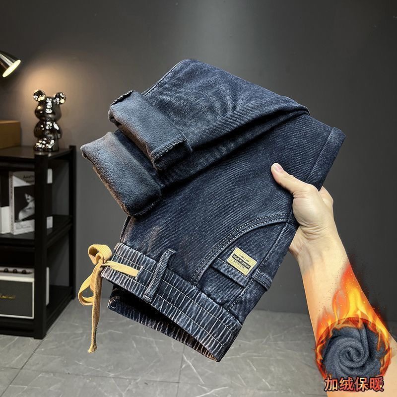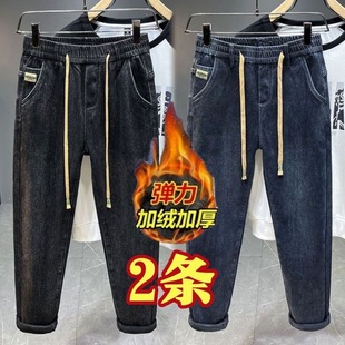 加绒加厚宽松直筒中年爸爸男长裤 新款 男冬季 恒源祥集团彩羊牛仔裤