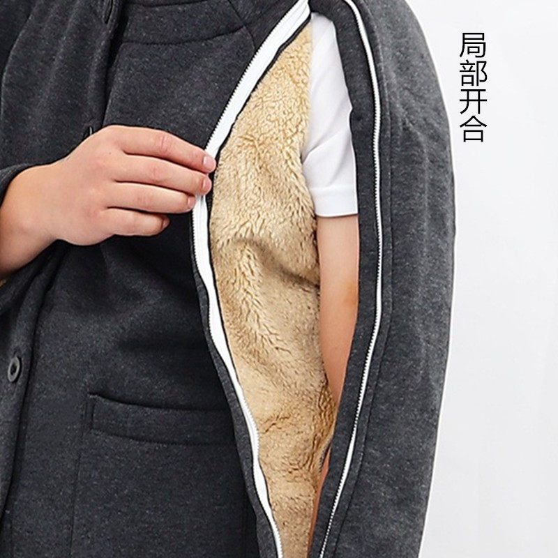 picc拉链上衣男手臂开口透析棉衣加厚羊羔绒病人保暖衣冬季 病号服