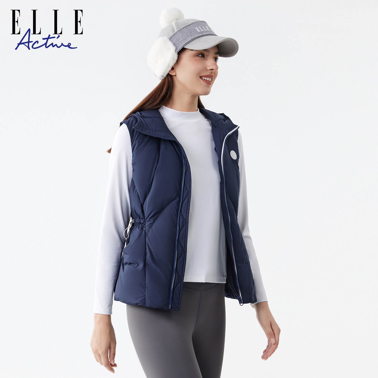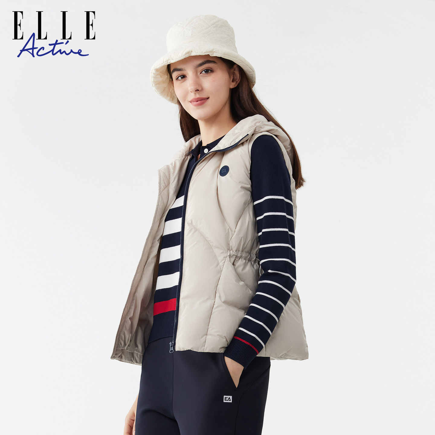 保暖连帽外套女 款 ELLE Active高智户外穿搭轻量感羽绒服马甲冬季