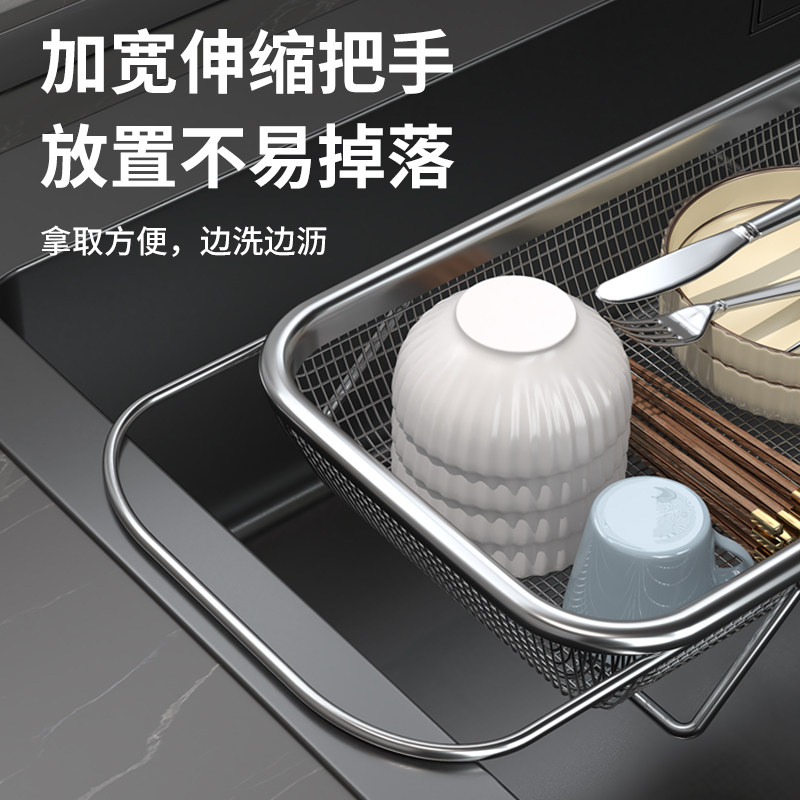 可伸缩沥水篮洗菜盆碗架厨房家用水果盘洗碗池水槽置物架滤水篮子