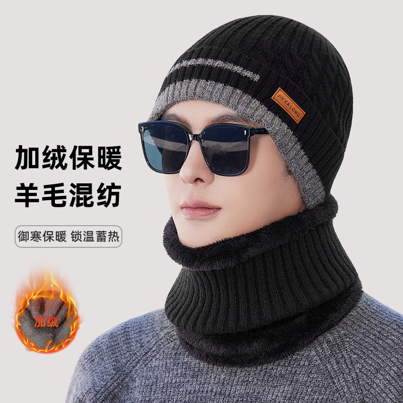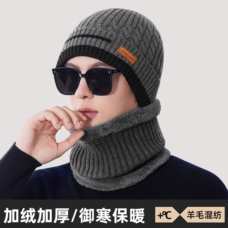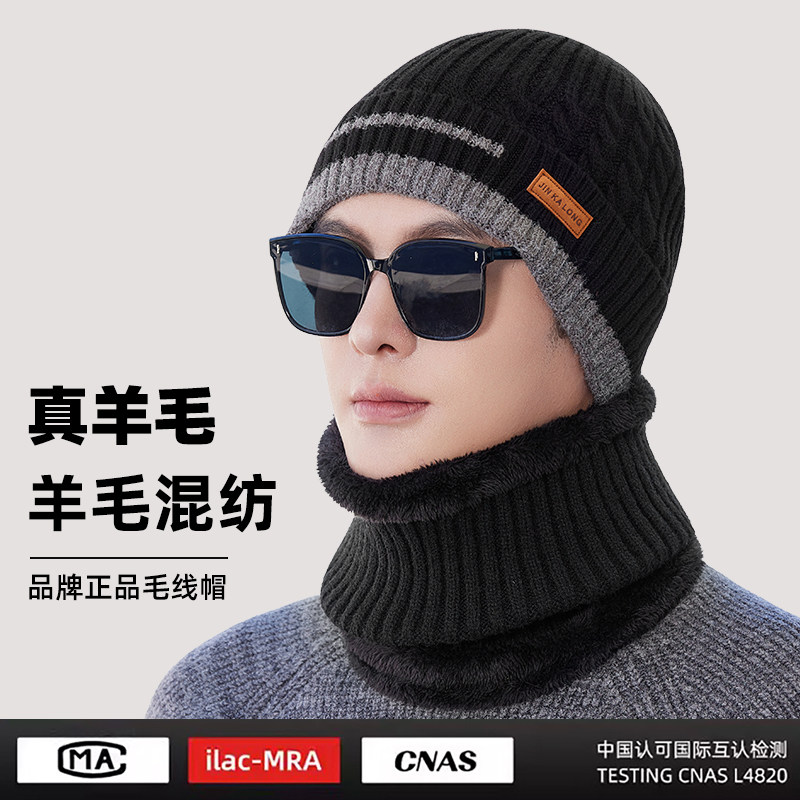 帽子男士 保暖羊毛混纺针织帽男中老年人防风防冻护耳骑行棉帽 冬季