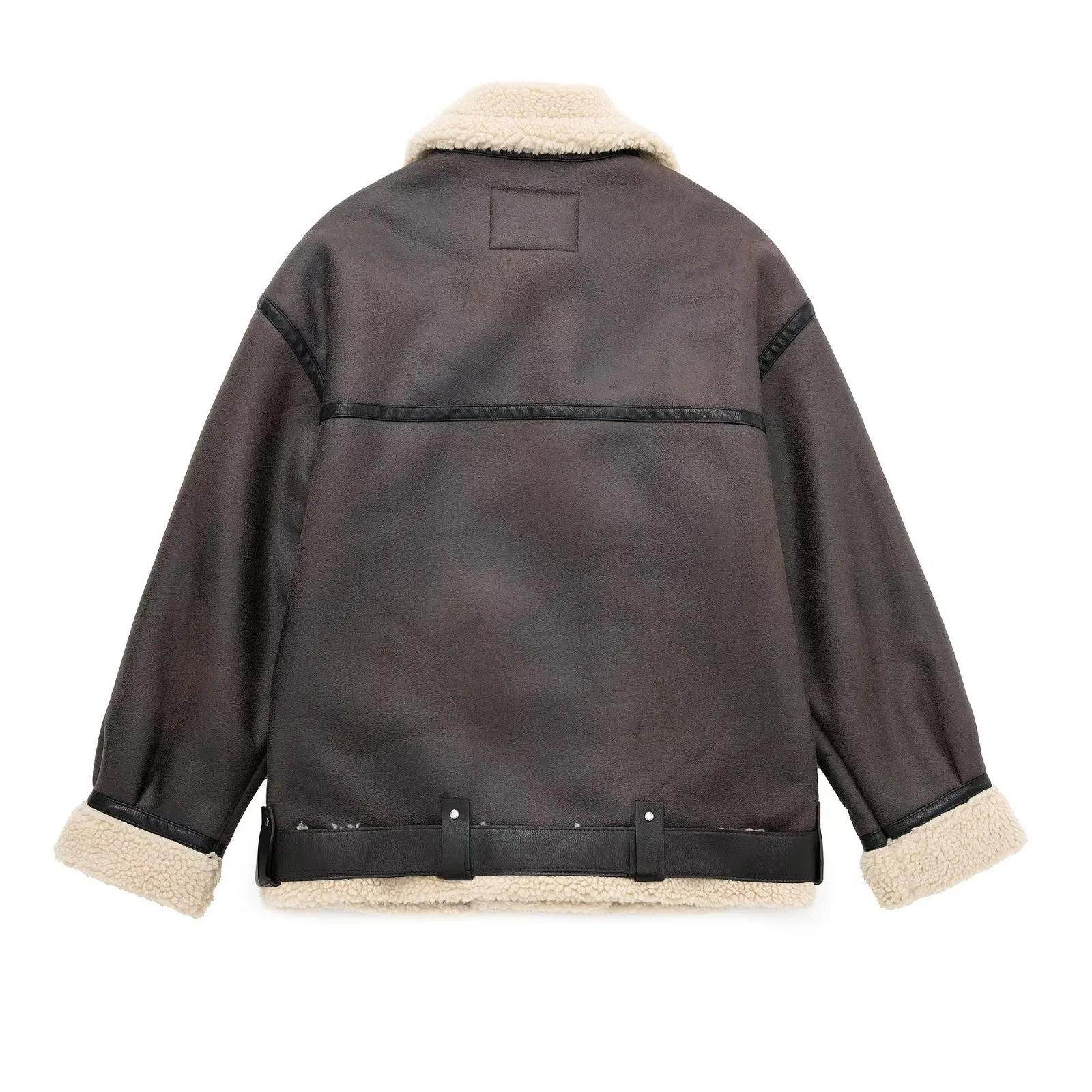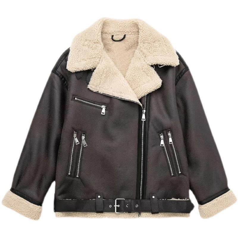 fur loose jacket warm imitation lamb velvet motorcycle and