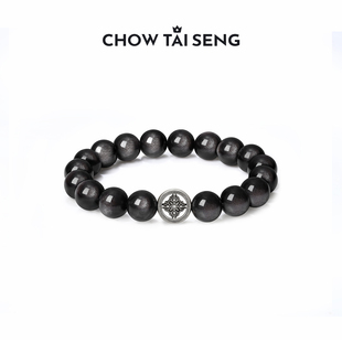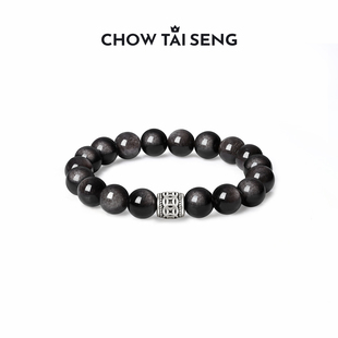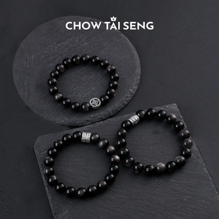 天然高端黑曜石手串乌金珠子散珠串珠黑色水晶手链男女保真黑曜石