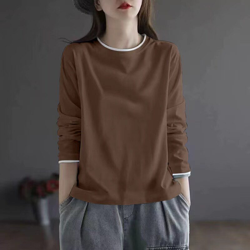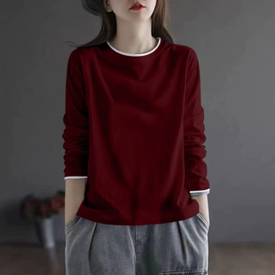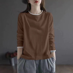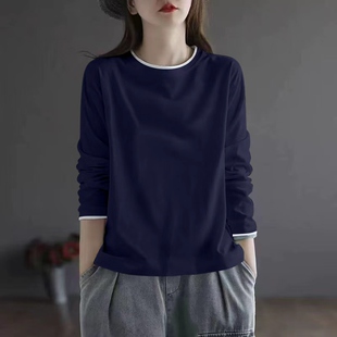 显瘦洋气打底衫 拼接撞色纯棉长袖 胖MM遮肚时尚 大码 t恤女春秋新款