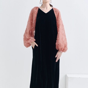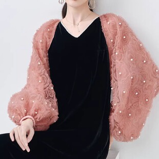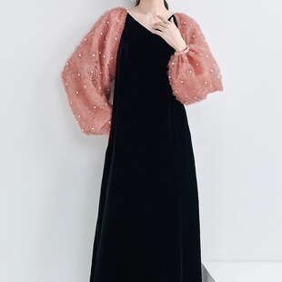 女装 丝绒连衣裙高端大码 礼服裙订婚裙宽松显瘦蚕丝晚礼服 新款 春季
