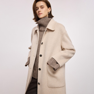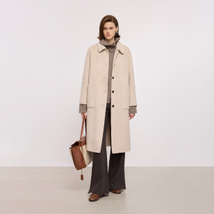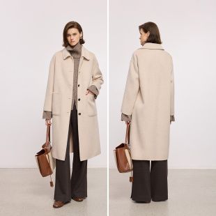 100%羊毛LILY2025冬新款 简约翻领宽松通勤浅色毛呢大衣外套女长款
