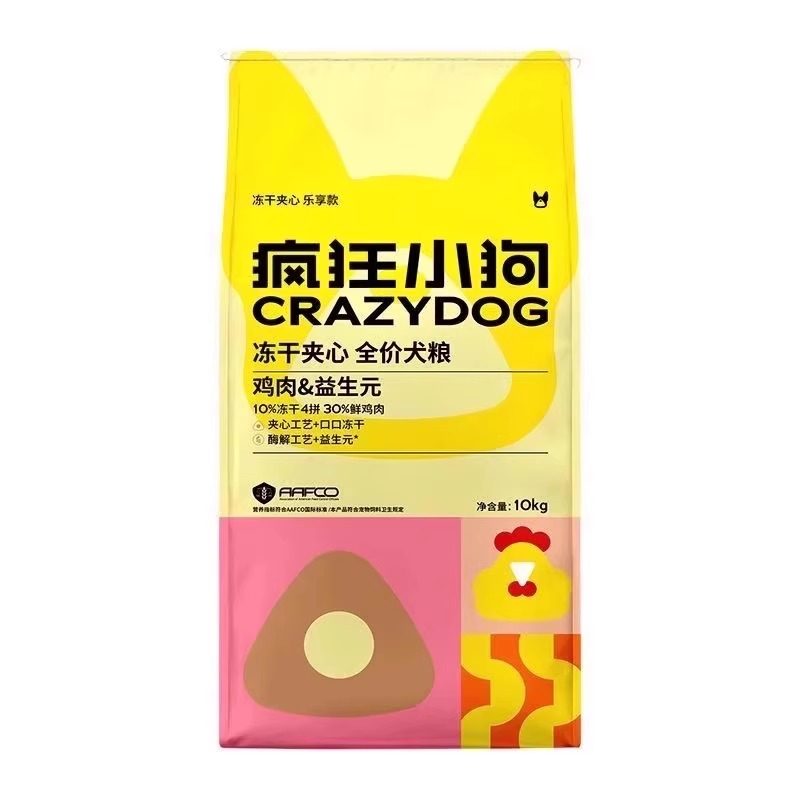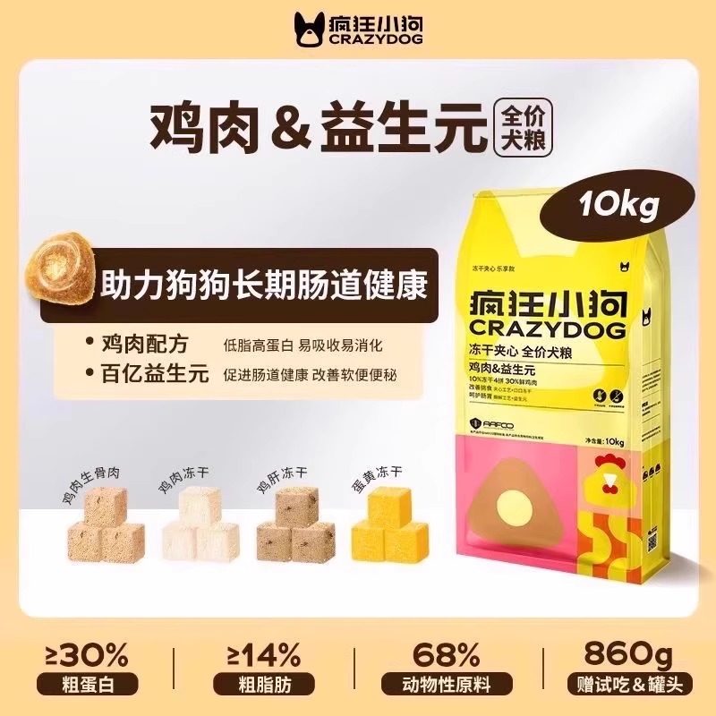 疯狂小狗冻干夹心狗粮1.5kg鸡肉益生元 鸭肉梨兔肉小耳朵犬粮10kg