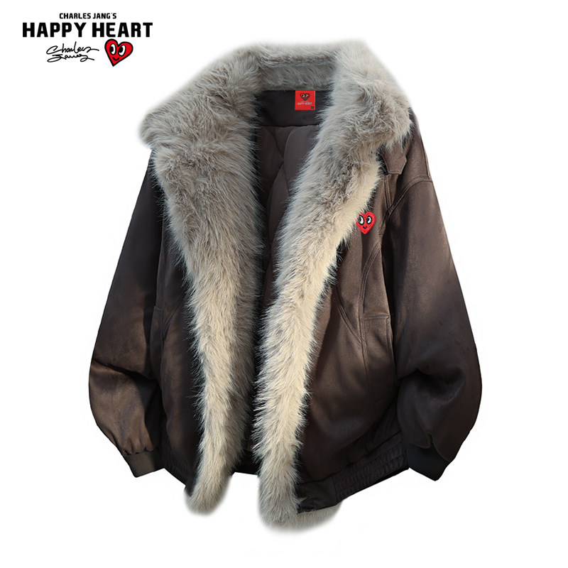 灯芯绒拼接巴恩风夹克男秋冬 复古咖色棉服外套猎装 马登工装 美式