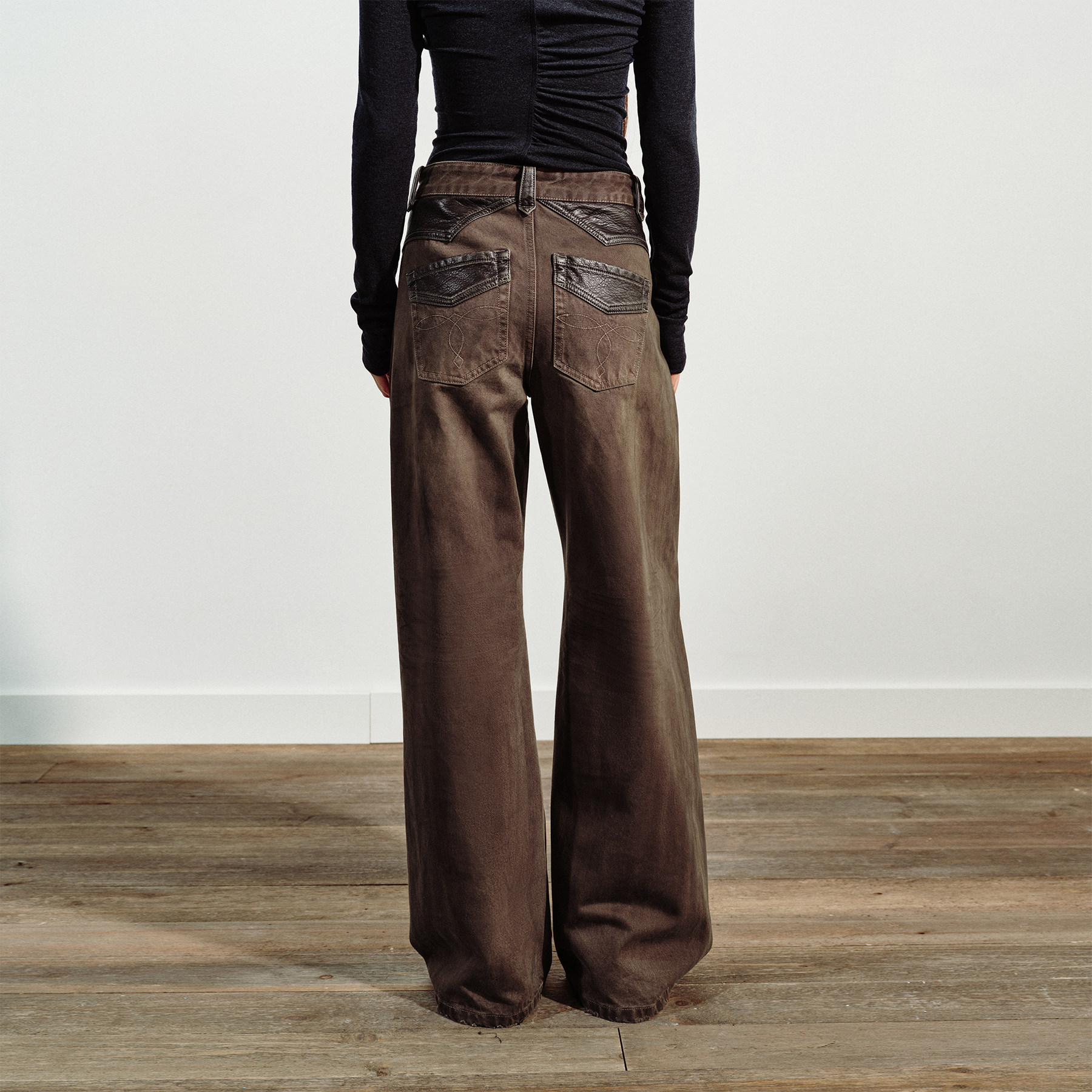 美丽复古棕拼料绣花弓形牛仔裤 VERMO 重塑立体廓形