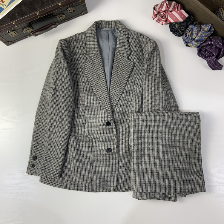 vintage古着日制女士羊毛秋冬西昭和港风复古女西服套装 460 瑕疵款