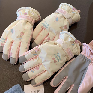 冬季 滑雪手套女可触屏加绒加厚保暖防寒防风防水摩托车骑行手套潮