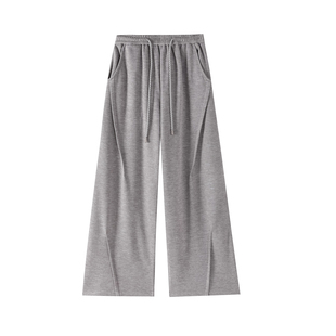 松弛感慵懒弯刀运动裤 咖色加绒糯米裤 休闲羊绒阔腿裤 美式 女秋冬季